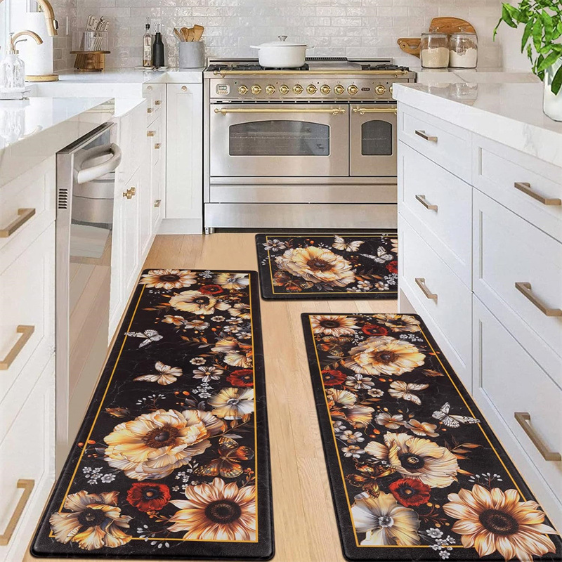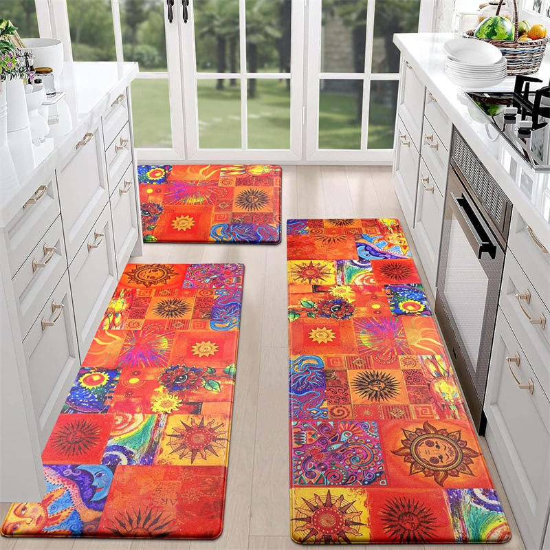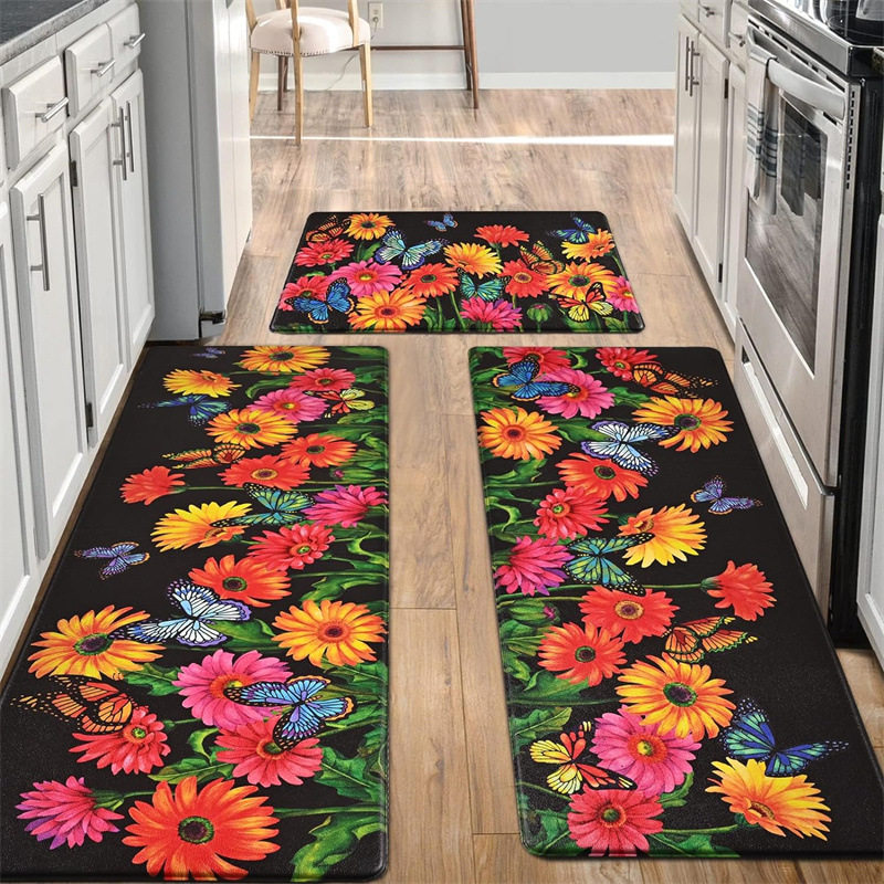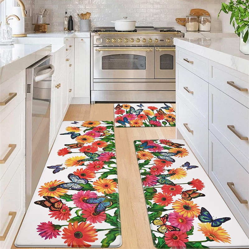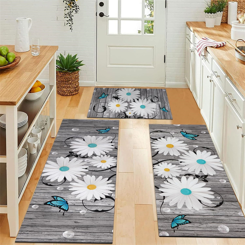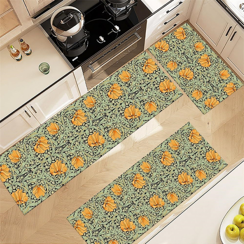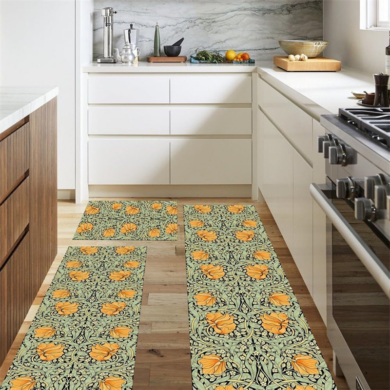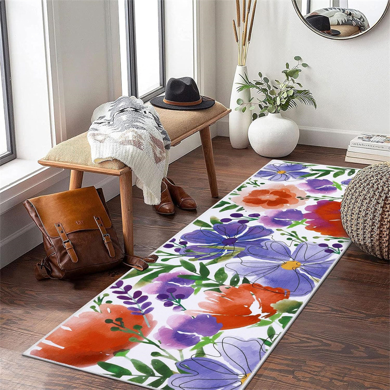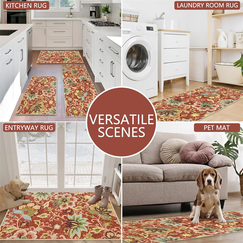 국경 간 페르시아 Luoshen 꽃 거실 3 피스 카펫 미끄럼 방지 침실 침실 침실 담요 소파 매트 간편한 케어 플로어 매트스토어 가기