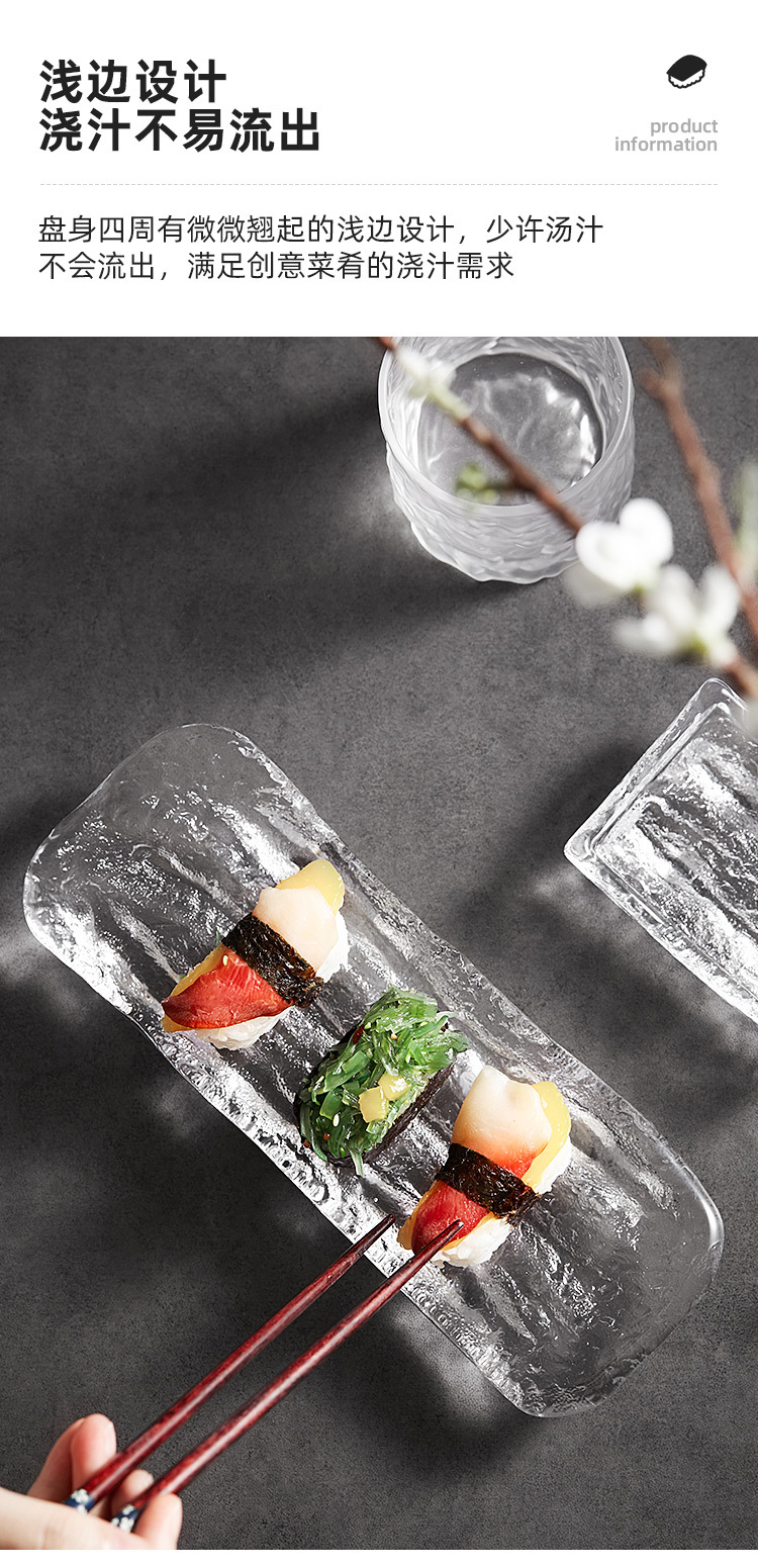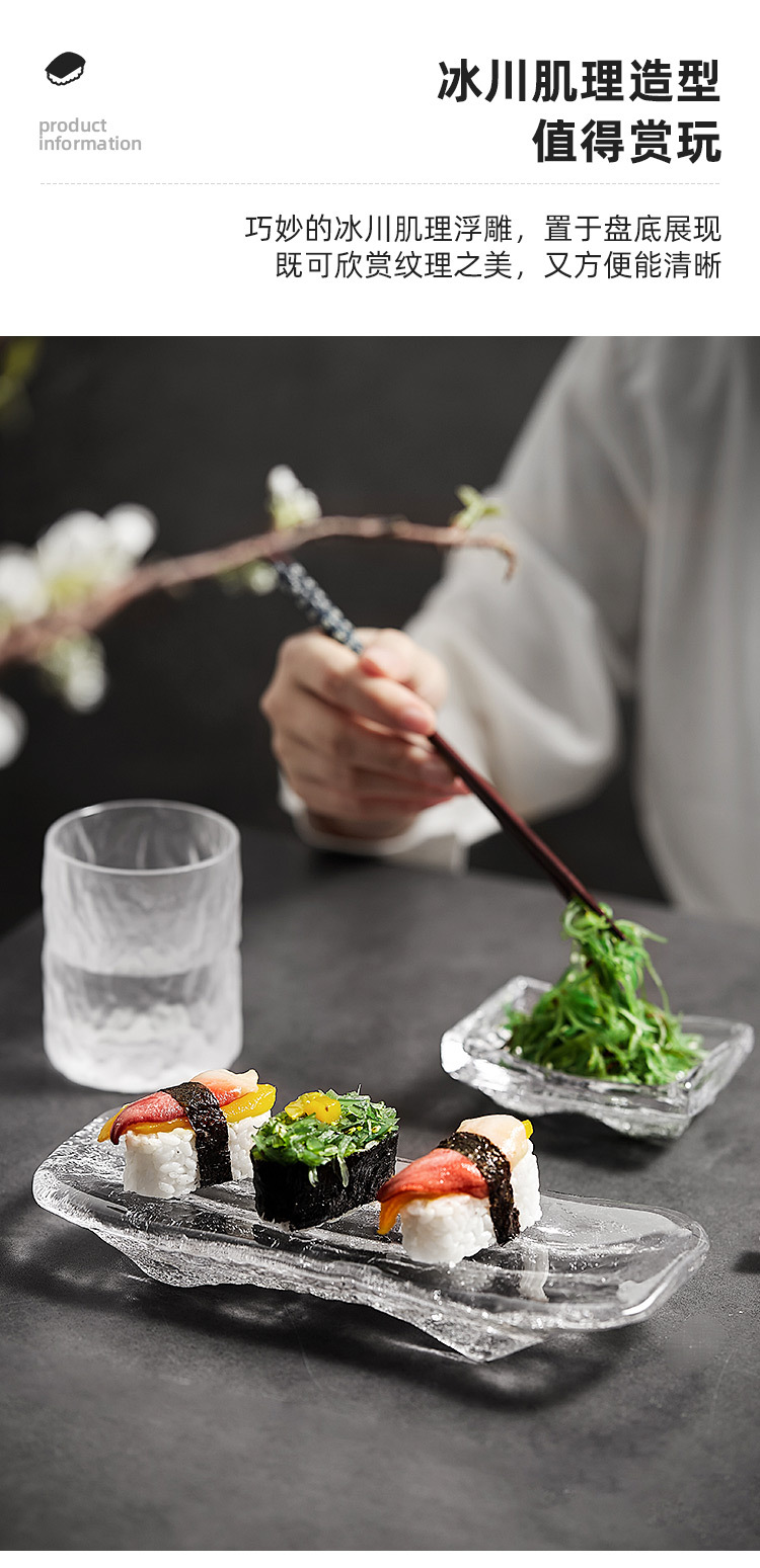 빙하 스시 플레이트 일본 요리 사시미 플레이트 딥 플레이트 가정용 유리 플레이트 머스타드 플레이트 진자 창의 장식품스토어 가기