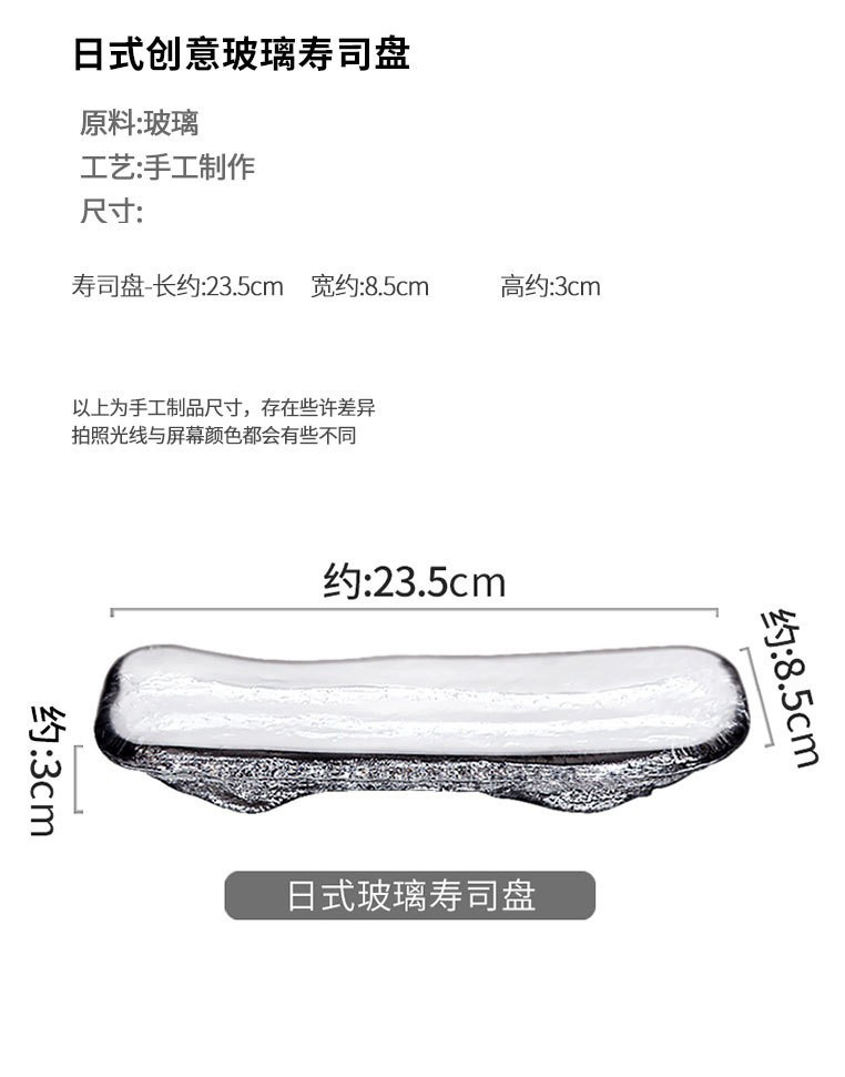 빙하 스시 플레이트 일본 요리 사시미 플레이트 딥 플레이트 가정용 유리 플레이트 머스타드 플레이트 진자 창의 장식품