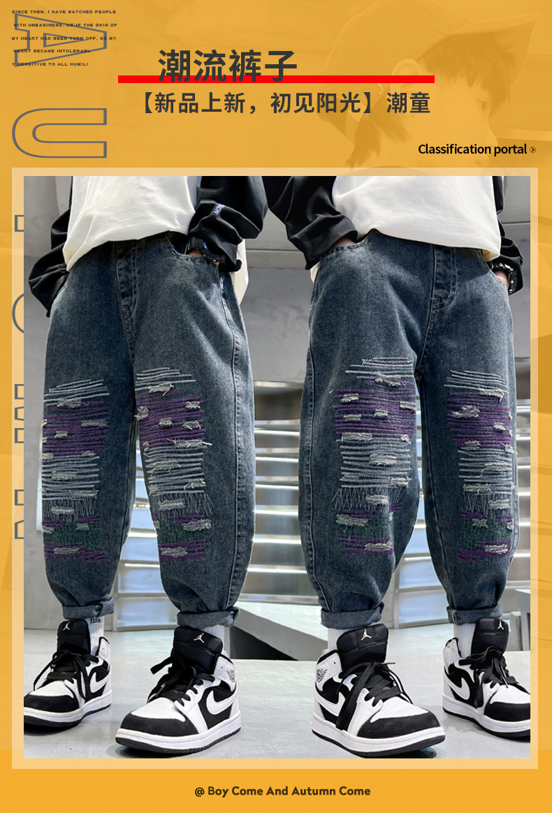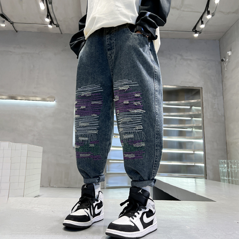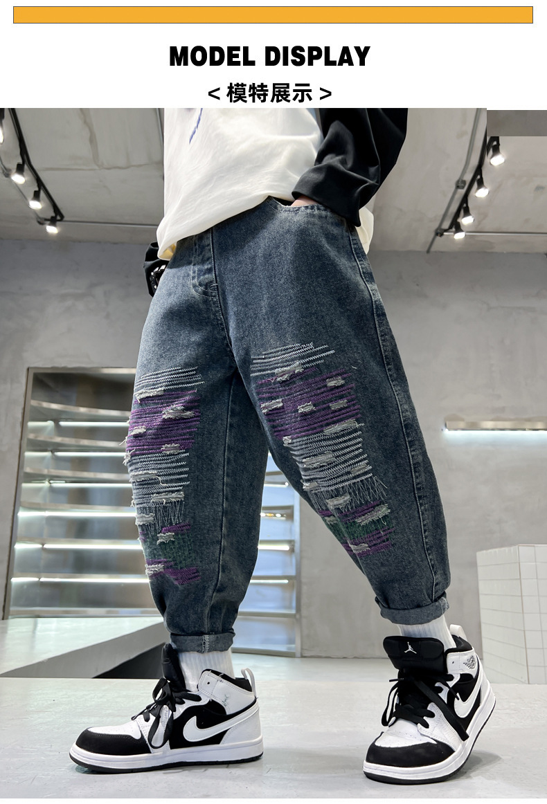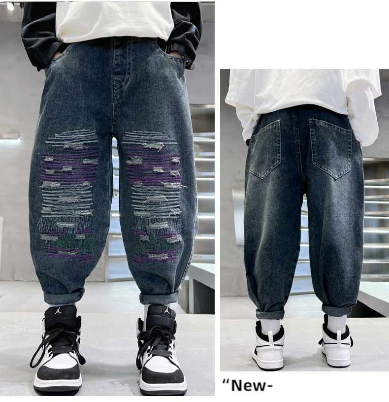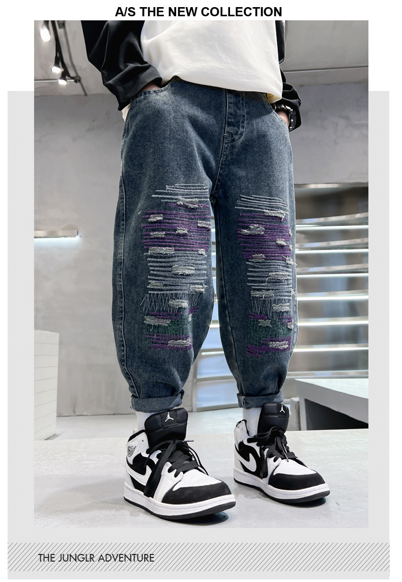 소년 가을 청바지 2024 새로운 어린이 시원하고 잘 생긴 패셔너블 서양식 한국 미드 빅 키즈 트렌디스토어 가기