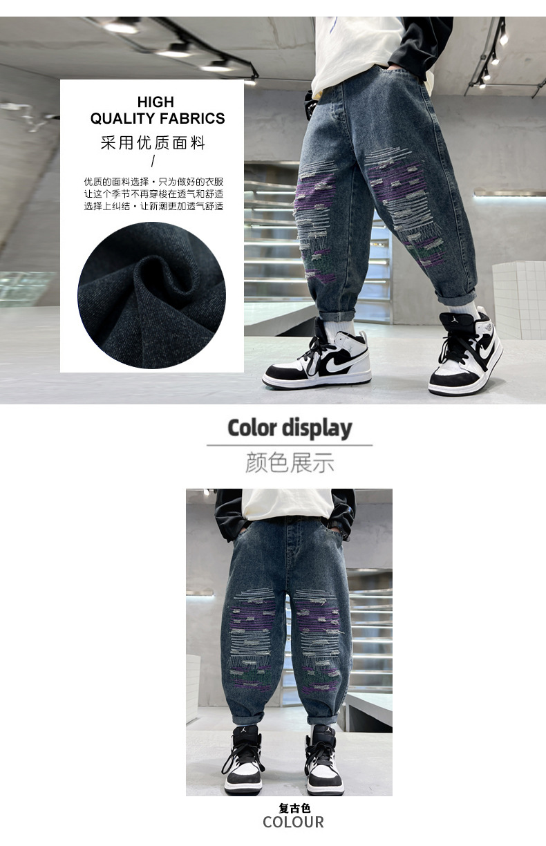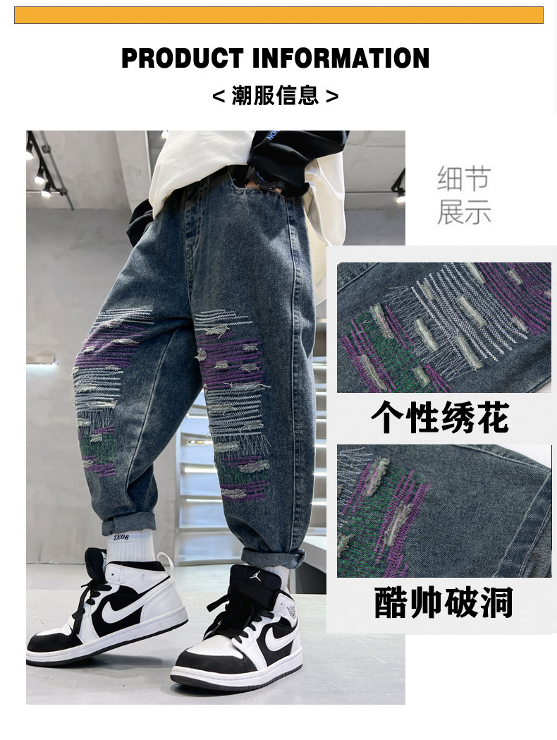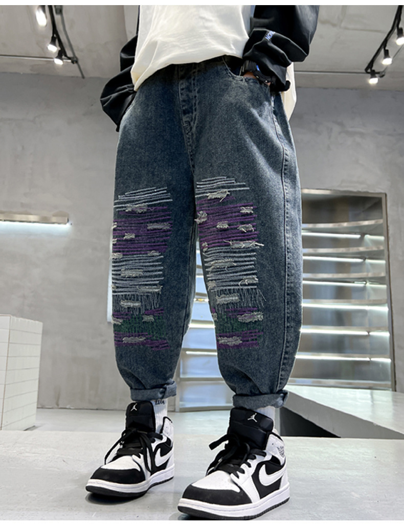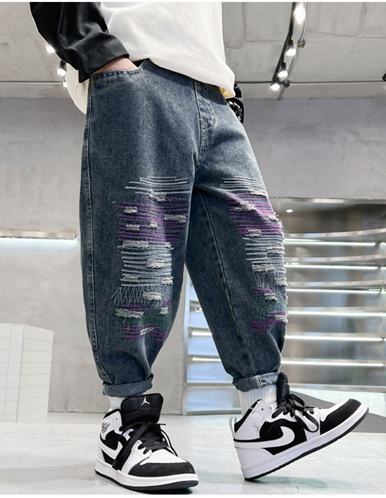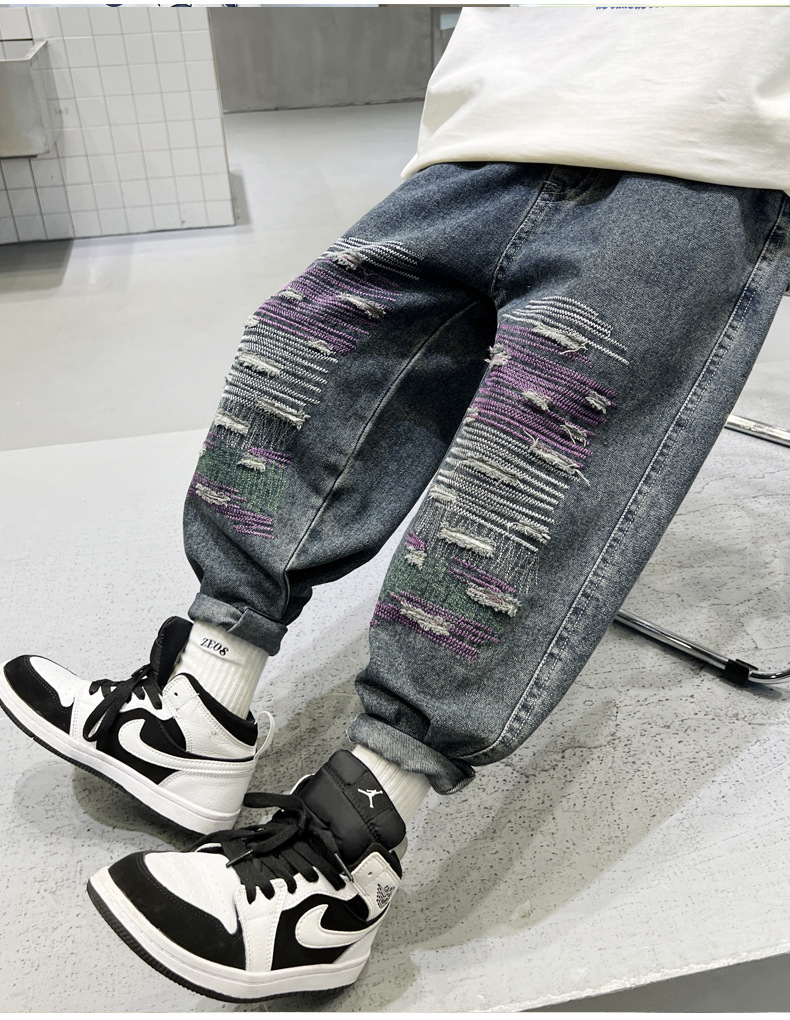 소년 가을 청바지 2024 새로운 어린이 시원하고 잘 생긴 패셔너블 서양식 한국 미드 빅 키즈 트렌디스토어 가기