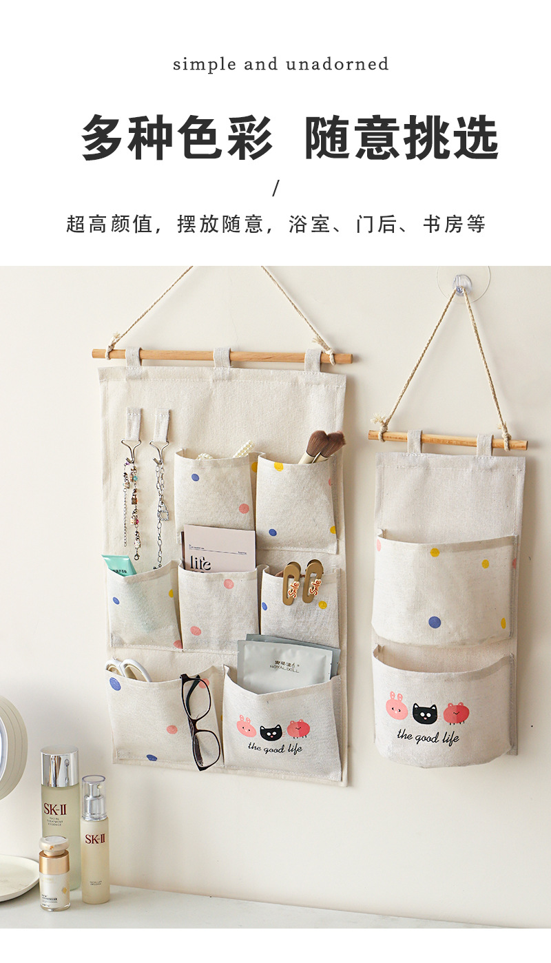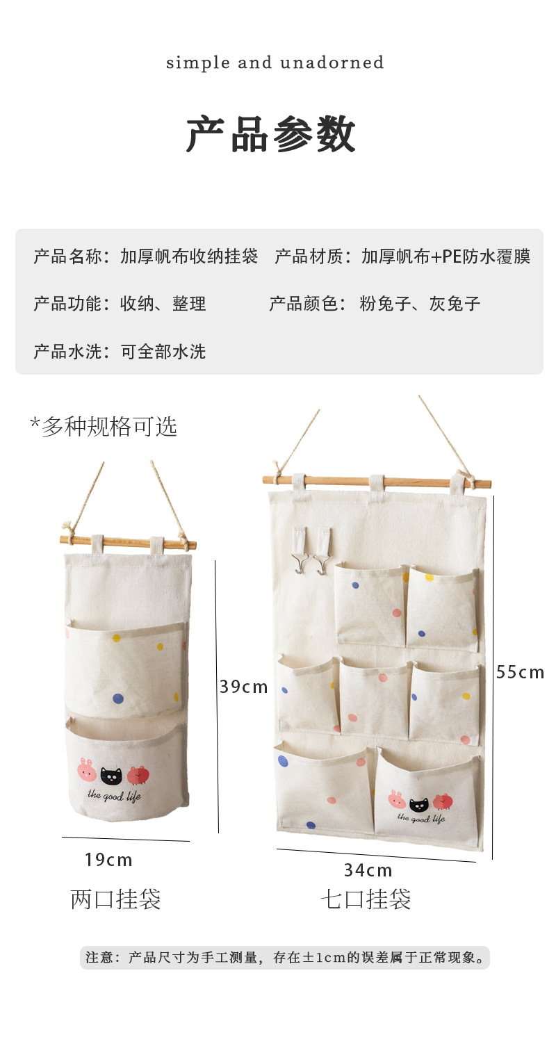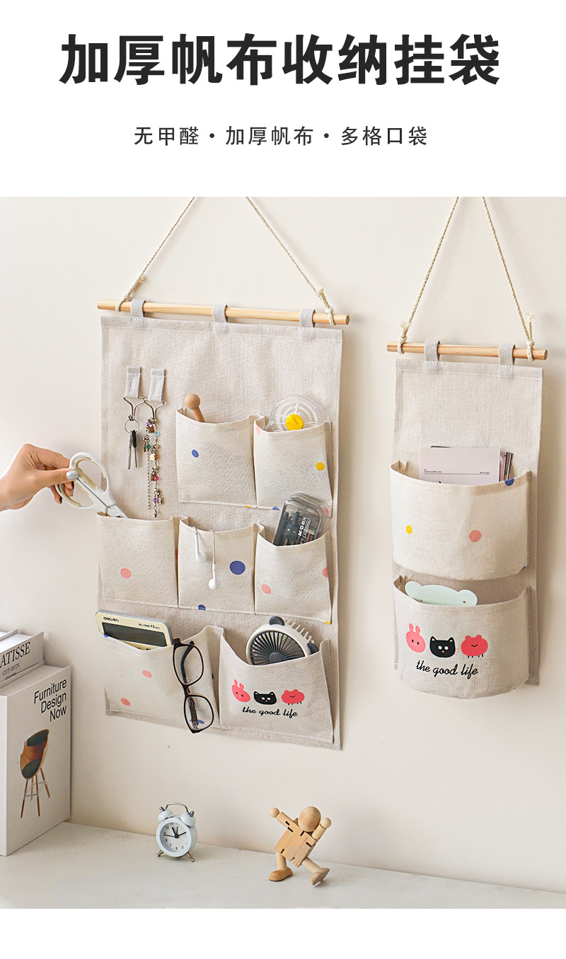 면과 린넨 소재의 가정용 벽걸이형 방수 수납 가방 기숙사 거실 문 뒤 다기능 대용량 수납 걸이 가방