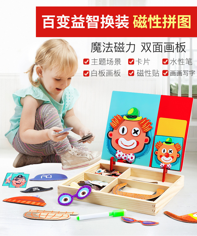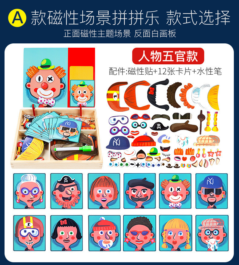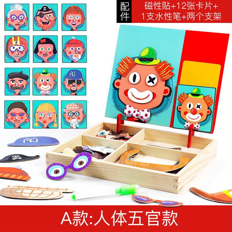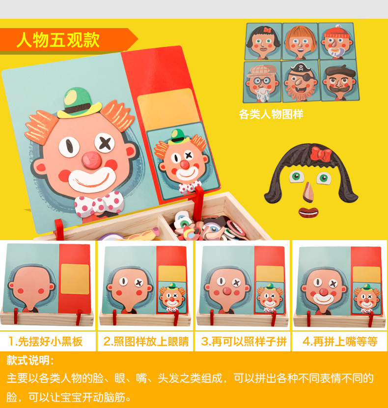 어린이 퍼즐 자기 얼굴 기능 퍼즐 소년과 소녀 자기 원피스 업 게임 4-6 세 나무 퍼즐 장난감스토어 가기