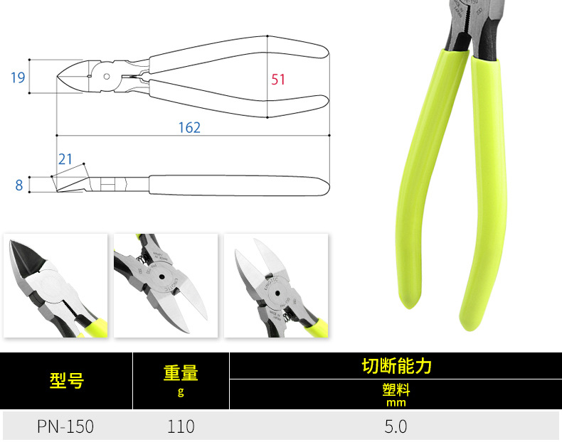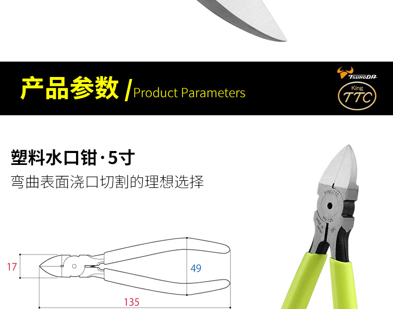 Kakota TTC 일본 수입 정밀 노즐 펜치 전기 평면 평면 펜치 플라스틱 노즐 절단 펜치 PN-115
