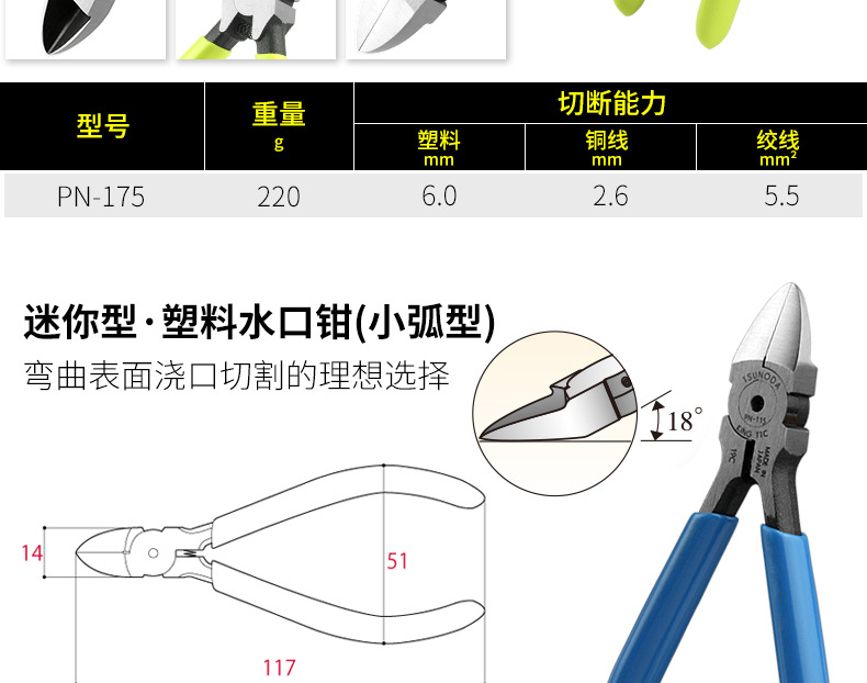• PN-115 유아용 전자 노즐 플라이어(곡선 절단) *표준
