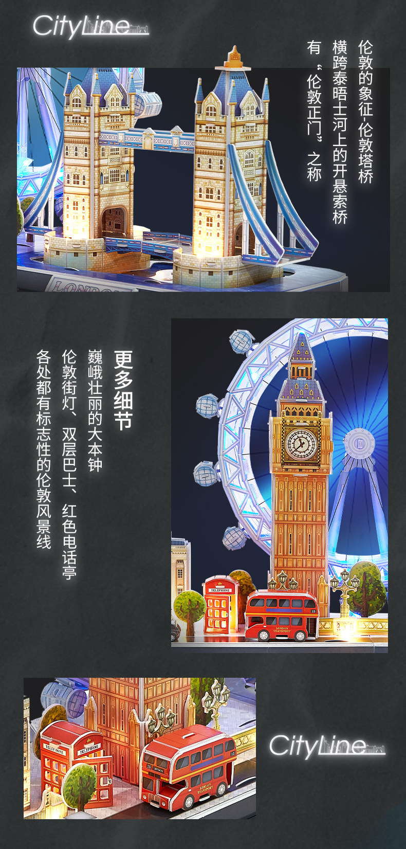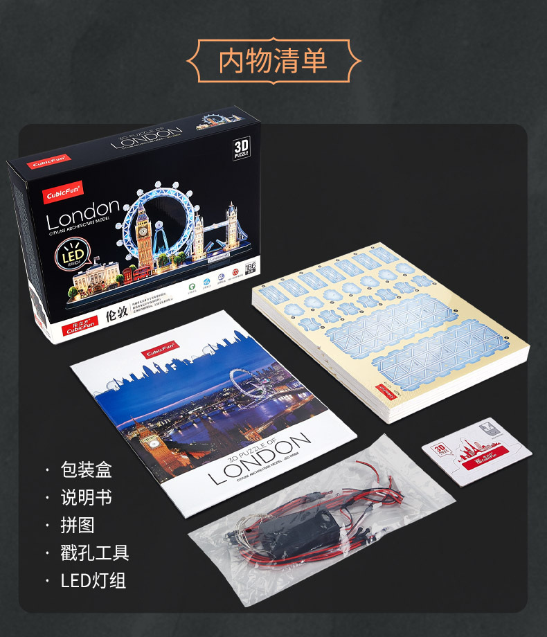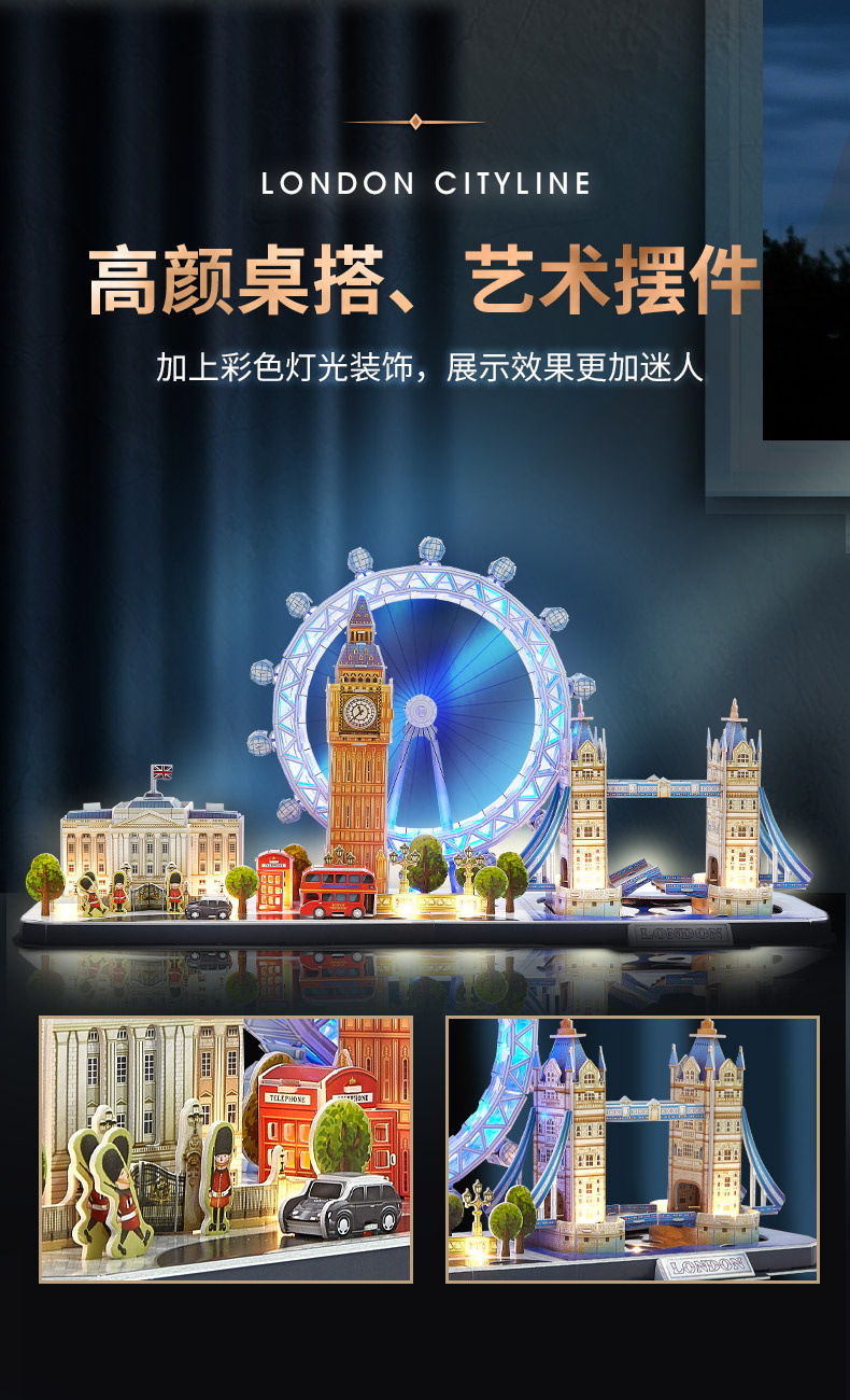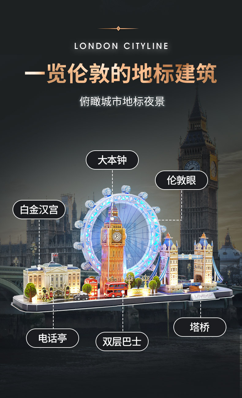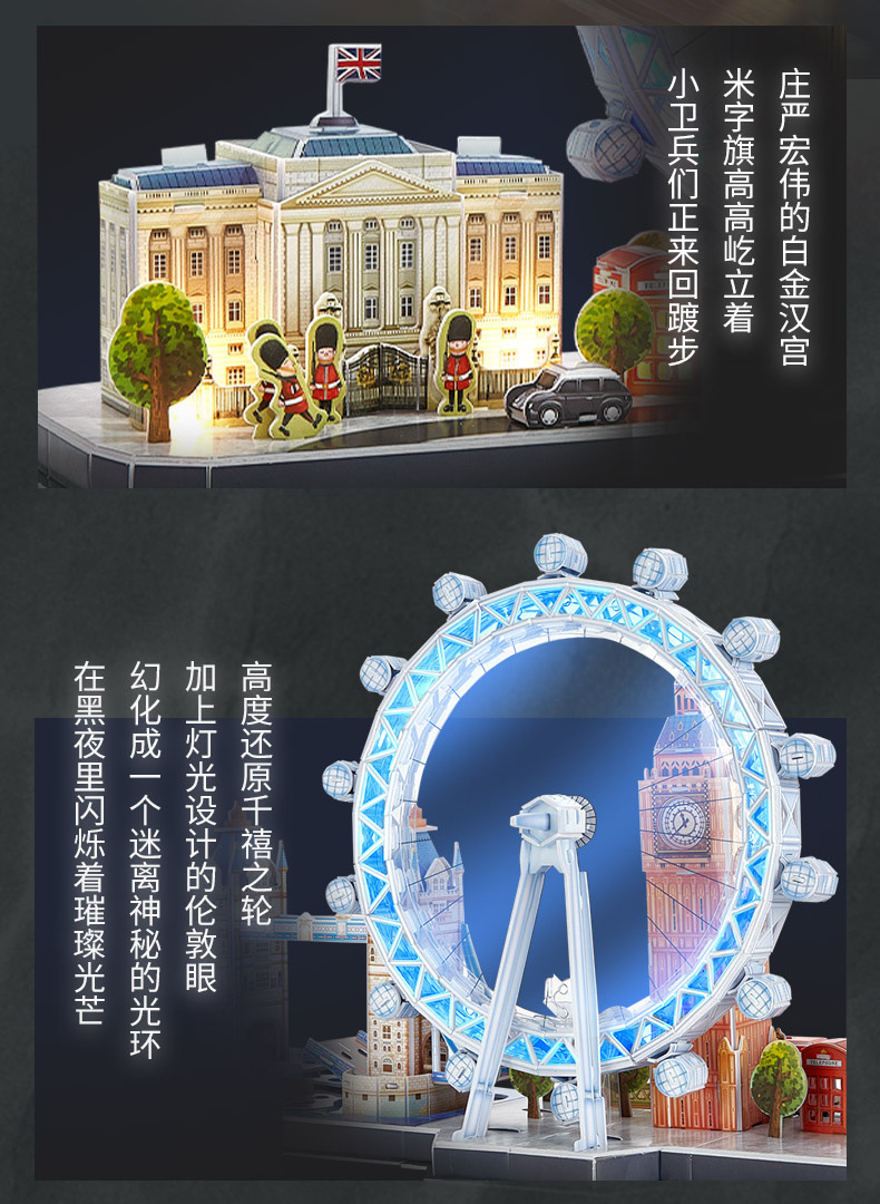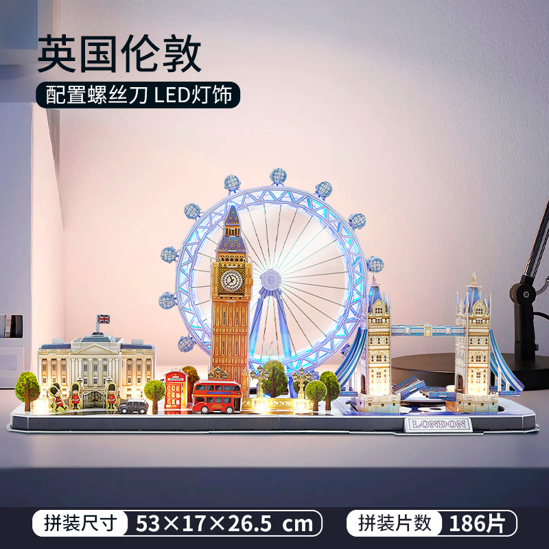 Lecube 영국 런던 입체 퍼즐 어린이 LED 에펠 탑 이름 건물 퍼즐 유행 장난감 모델스토어 가기