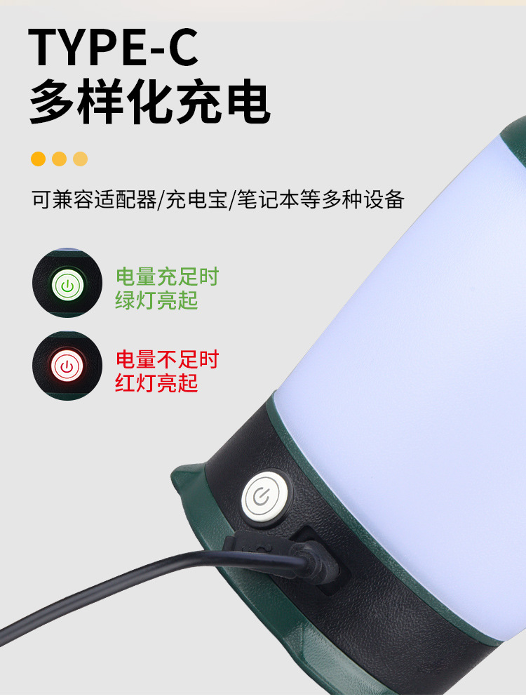 • 녹색 LY01 캠핑 램프(충전식 모델)