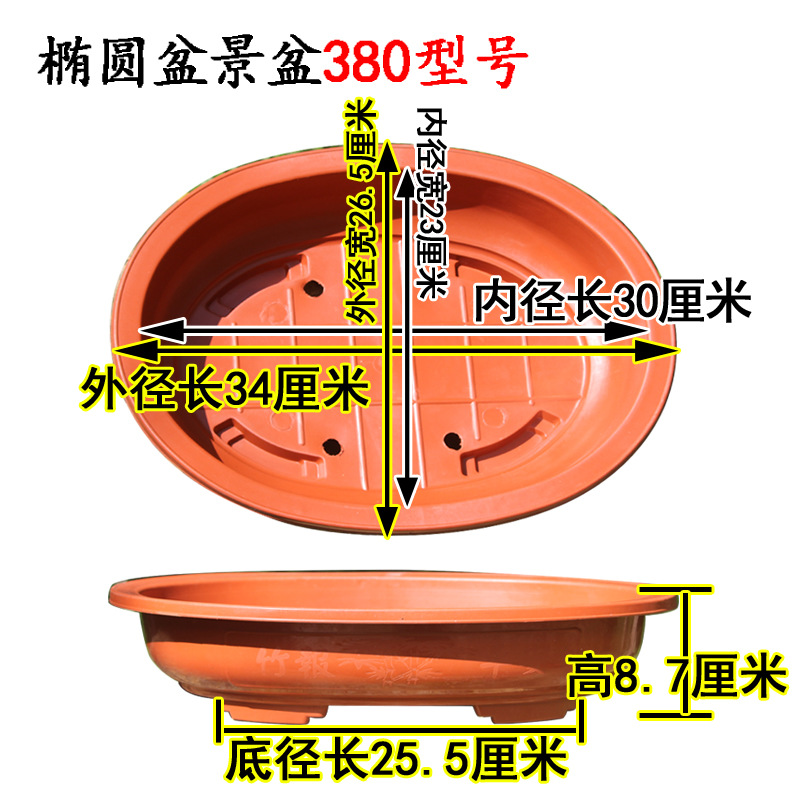 • 벽돌 붉은 타원형 380 # 분재 분지