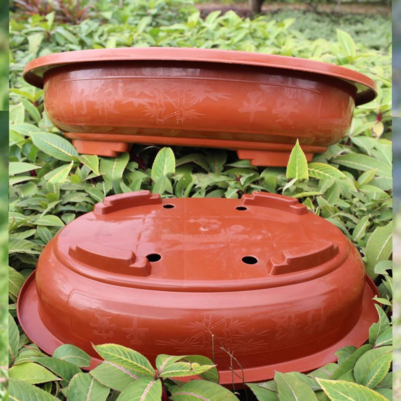 • 벽돌 붉은 타원형 580 # 분재 분지