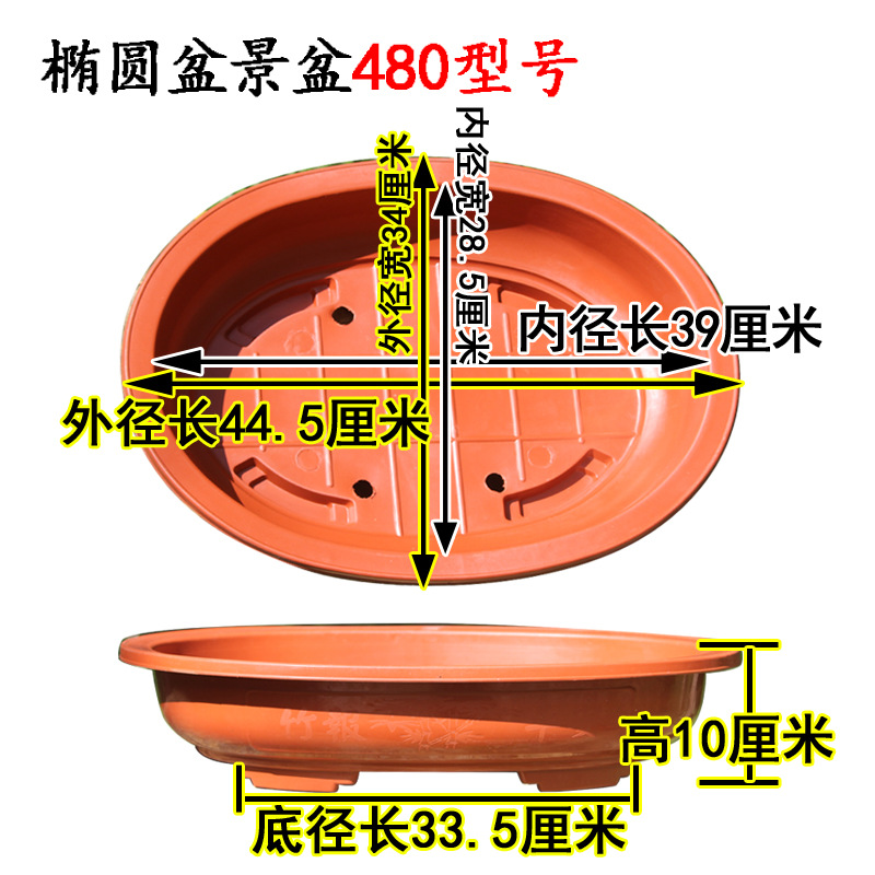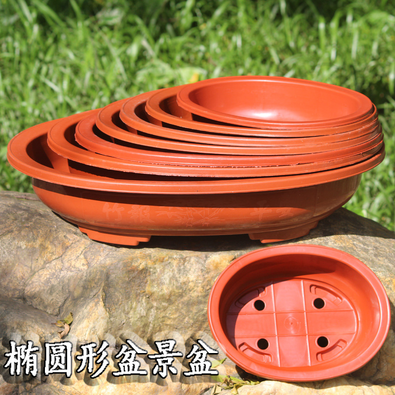 • 벽돌 붉은 타원형 480 # 분재 분지