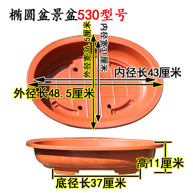 • 벽돌 붉은 타원형 530 # 분재 분지