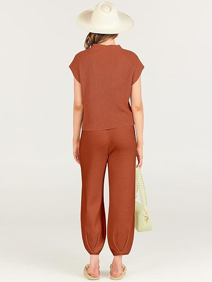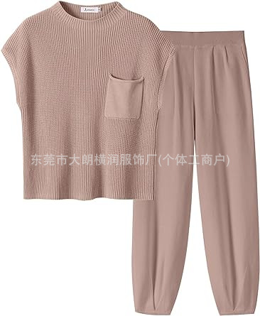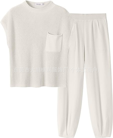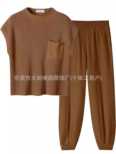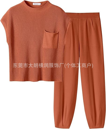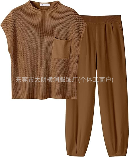 2024 아마존 독립 역 국경 반 거북 목 여성의 느슨한 가을과 겨울 니트 셔츠 캐주얼 세트 바지