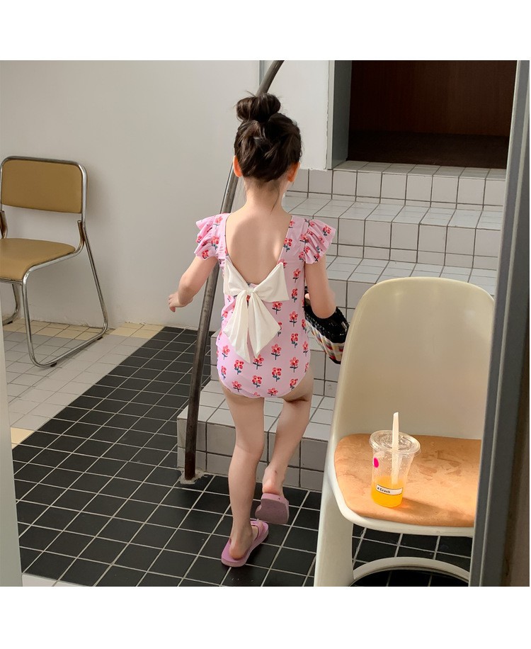 꽃과 어린이 수영복 2024 여름 새 소녀 꽃 원피스 수영복 한국 수영 모자 투피스 세트스토어 가기