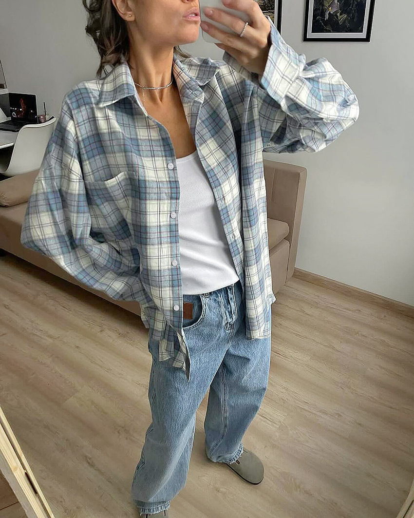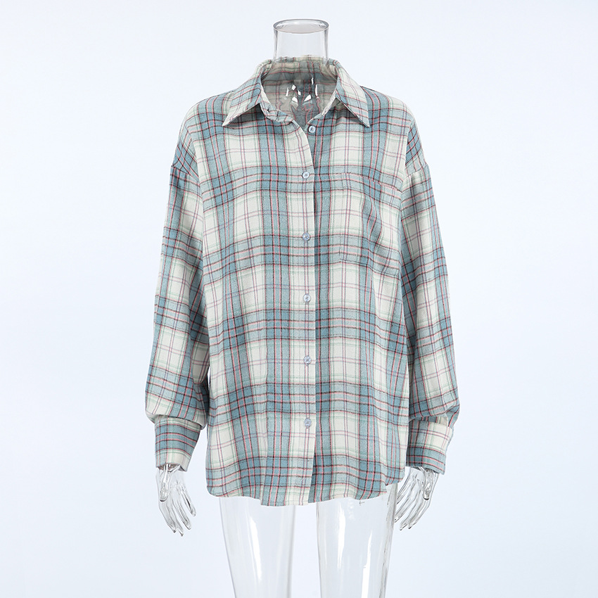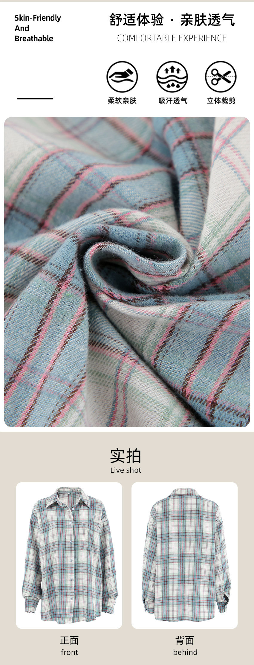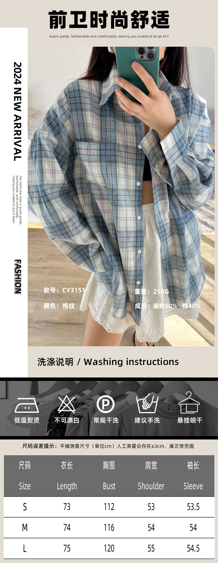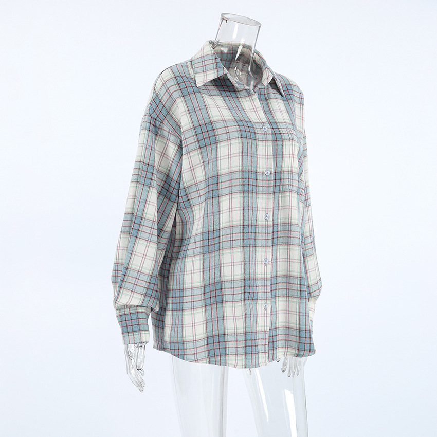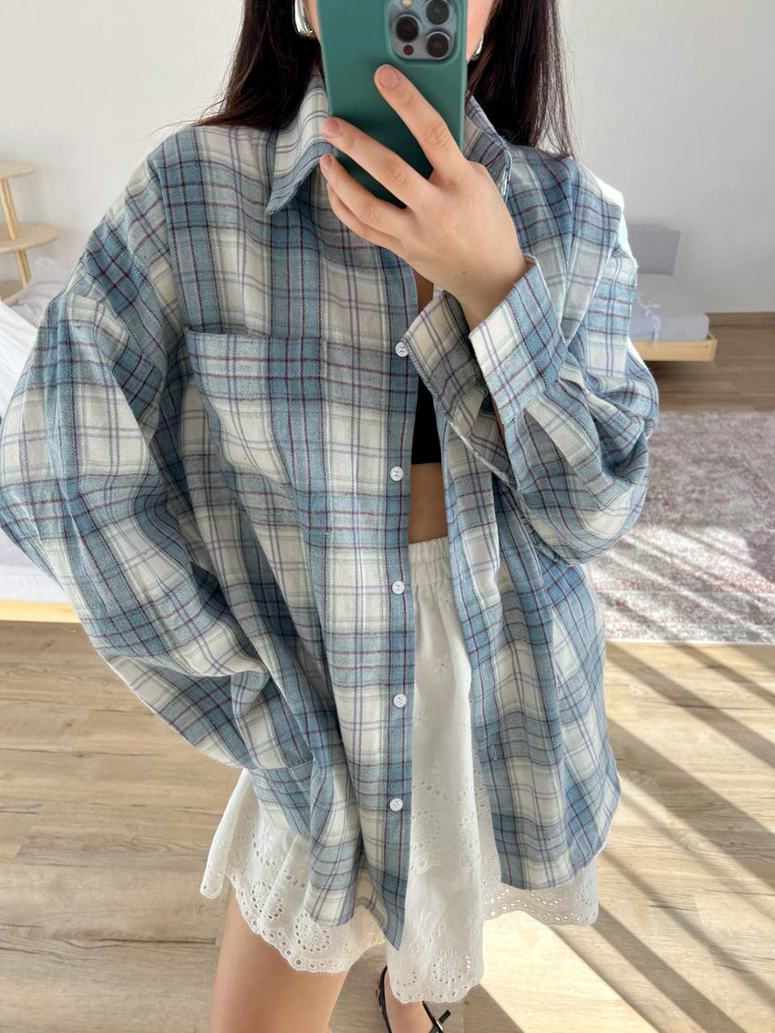 클래식 라펠 긴팔 체크무늬 여성 캐주얼 루즈핏 셔츠 2026 봄 유럽 및 미국 패션 신상 여성 상의