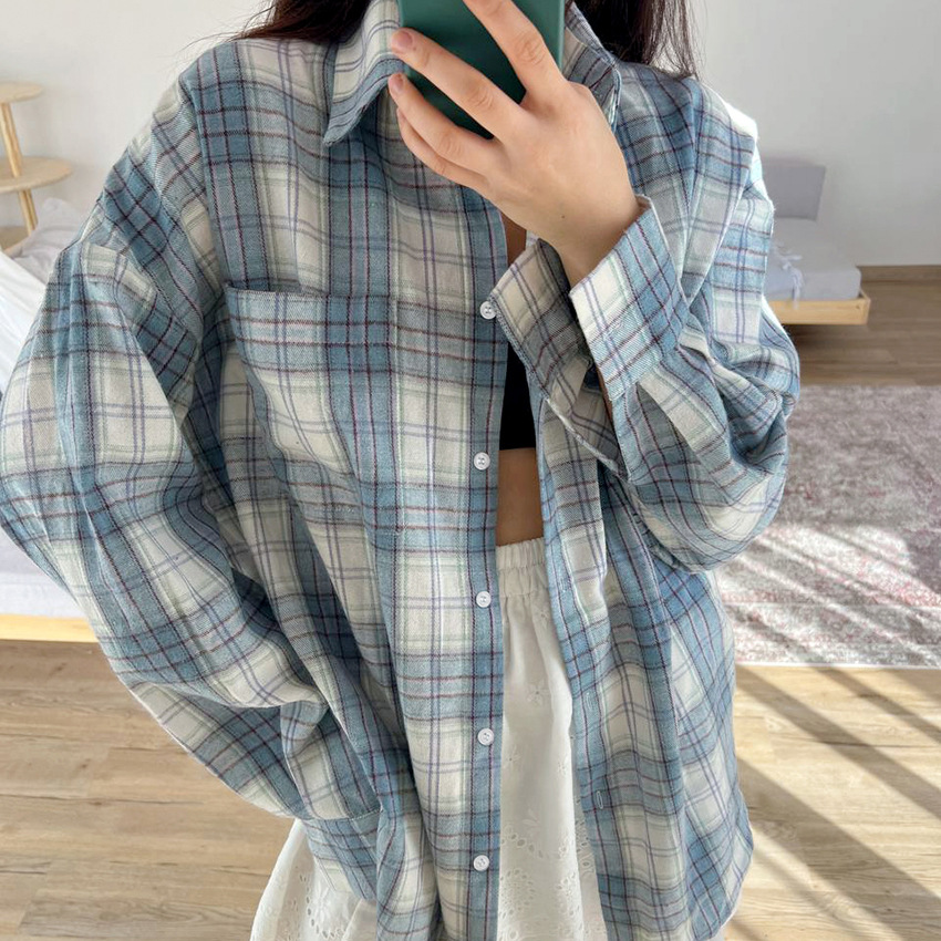 클래식 라펠 긴팔 체크무늬 여성 캐주얼 루즈핏 셔츠 2026 봄 유럽 및 미국 패션 신상 여성 상의스토어 가기