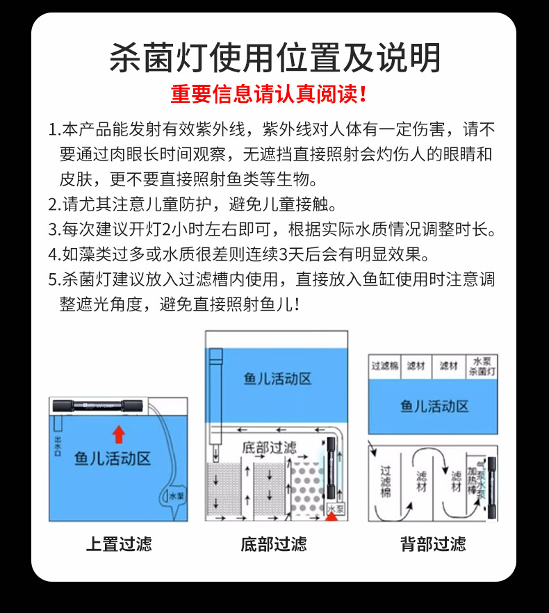 수족관 소독 램프를 위한 물고기 탱크 방수 작은 타이밍 조류 제거 UV 특별한 다이빙 살균 램프