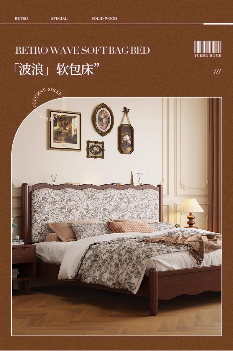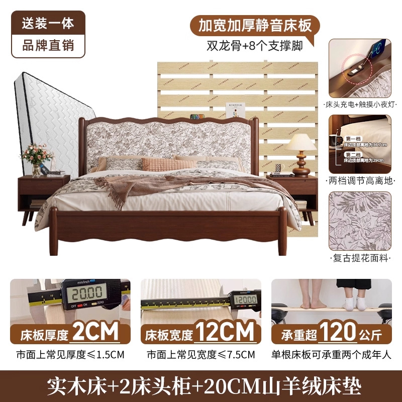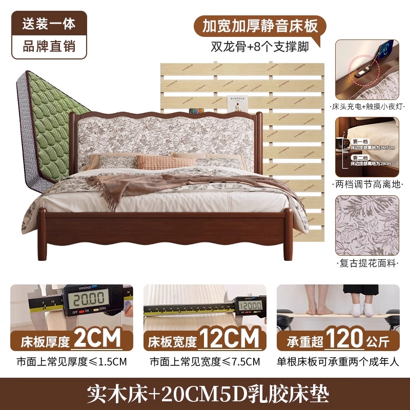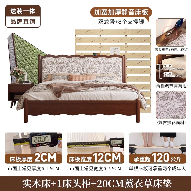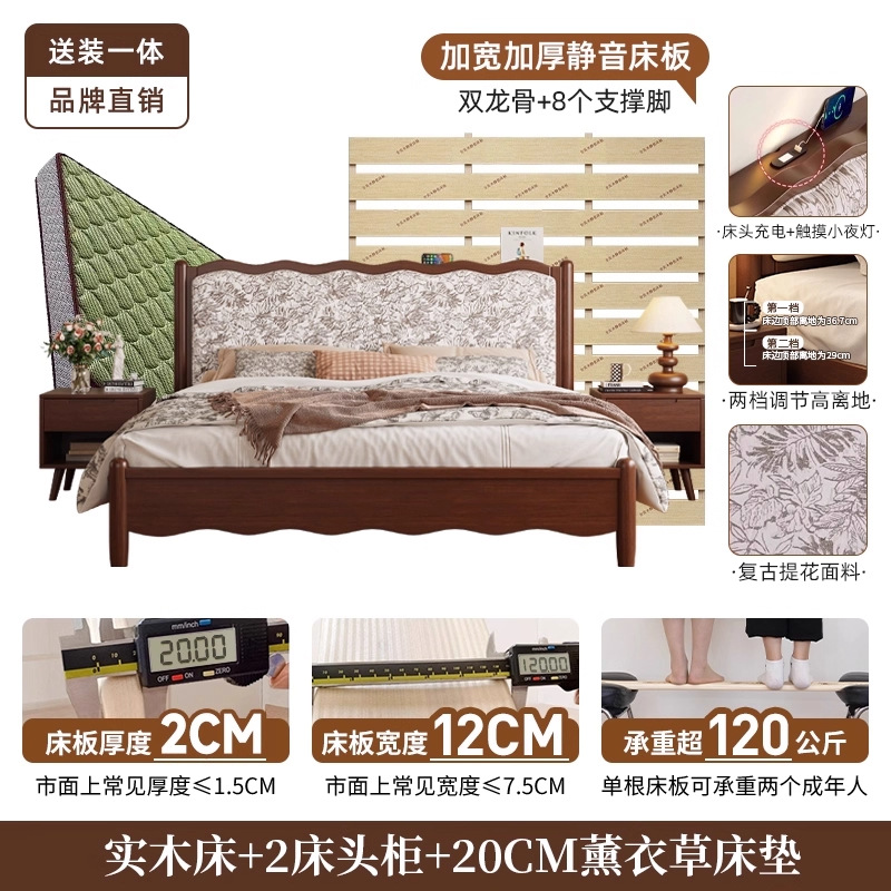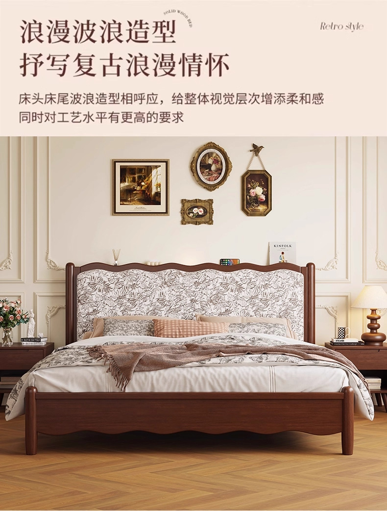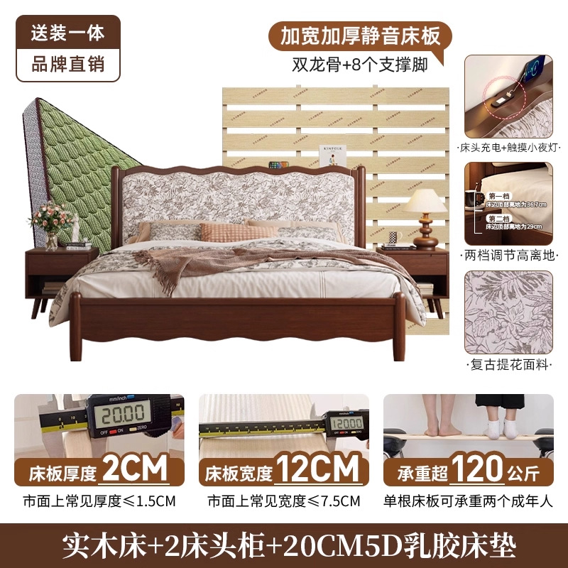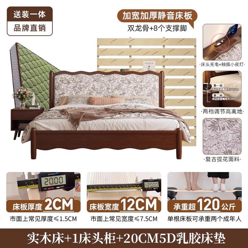 북유럽 모든 단단한 나무 복고풍 더블 침대 1.8 m 웨이브 침대 골동품 침대 1.5 m 간단한 부드러운 가방 웨딩 침대 침실스토어 가기