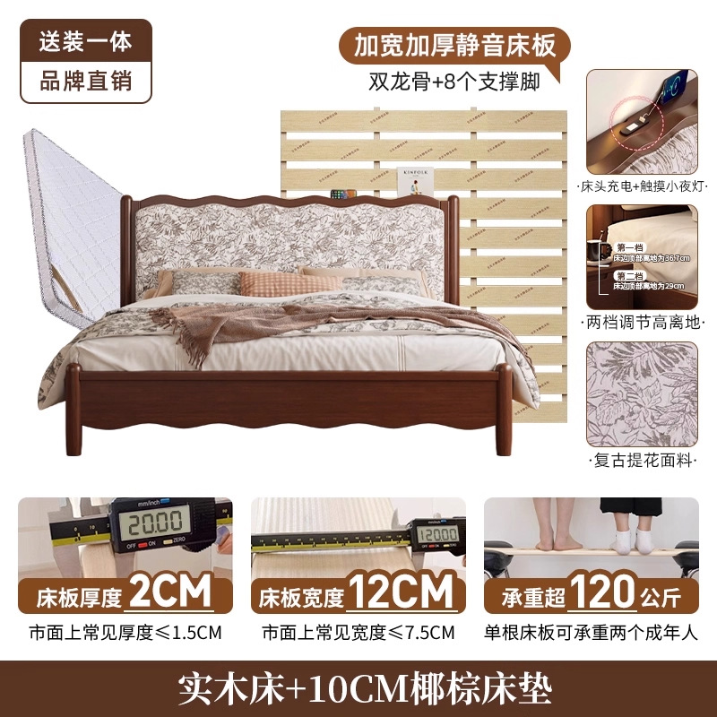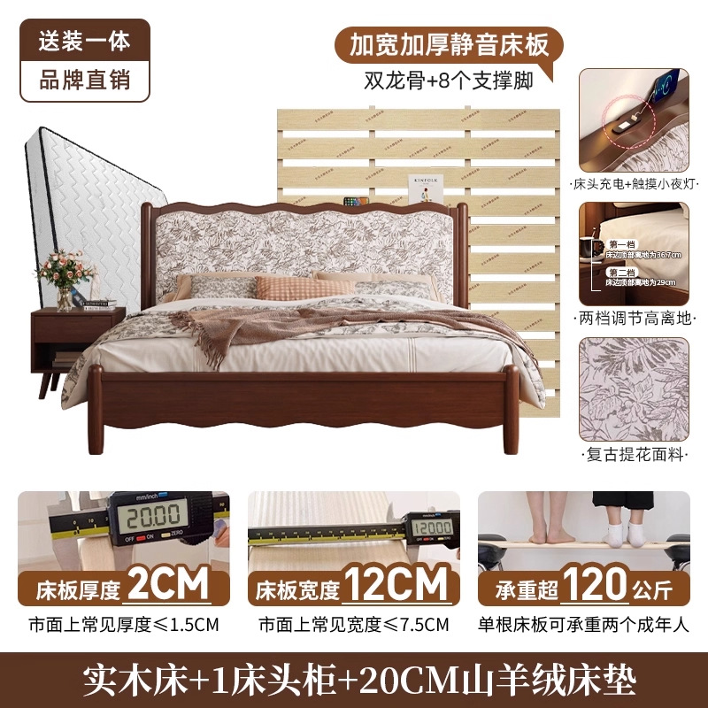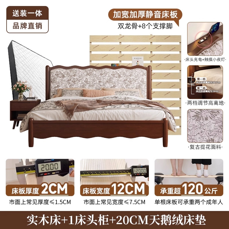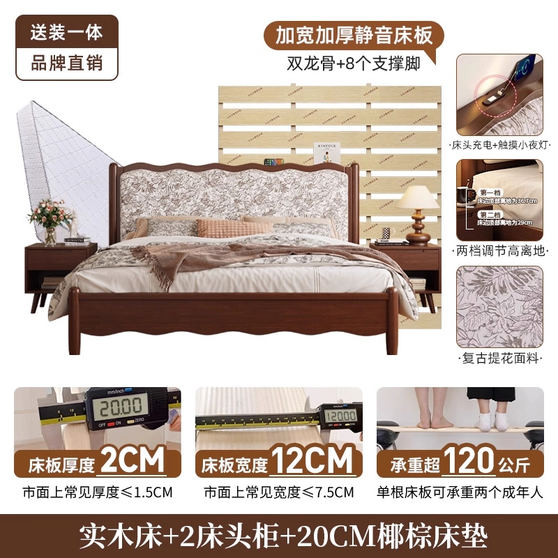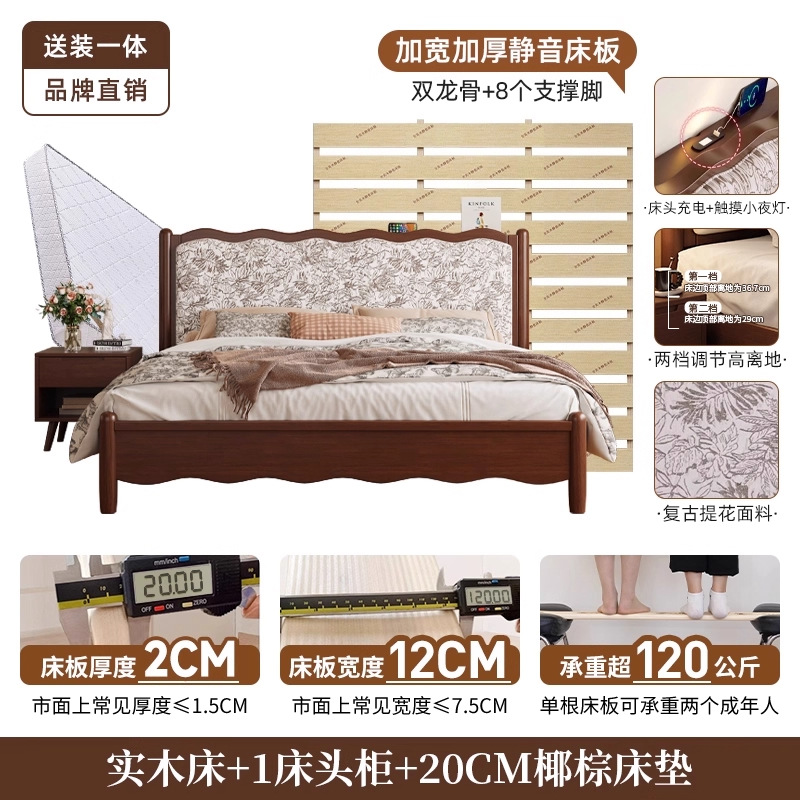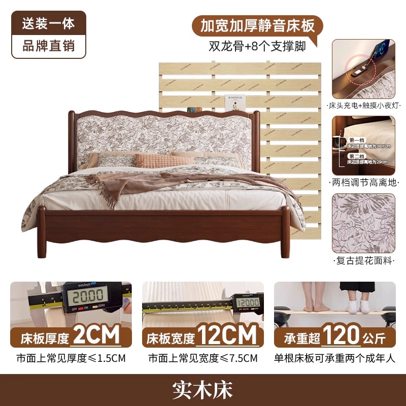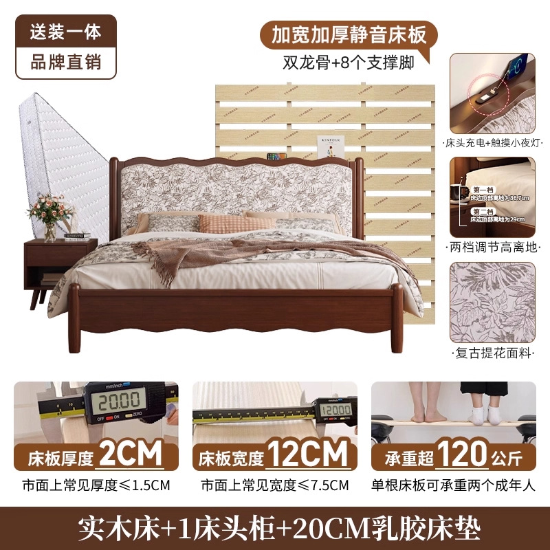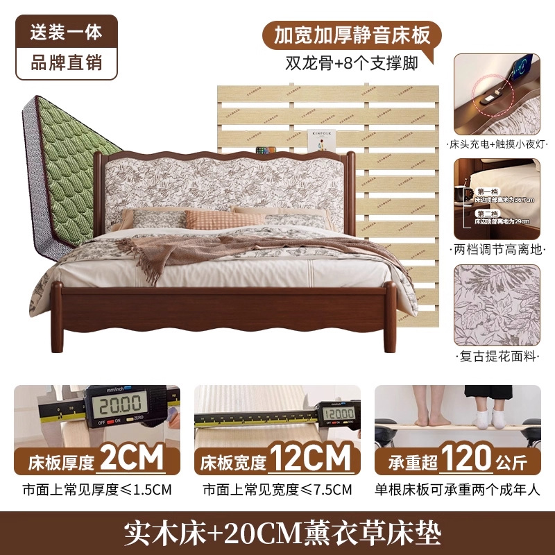 북유럽 모든 단단한 나무 복고풍 더블 침대 1.8 m 웨이브 침대 골동품 침대 1.5 m 간단한 부드러운 가방 웨딩 침대 침실스토어 가기