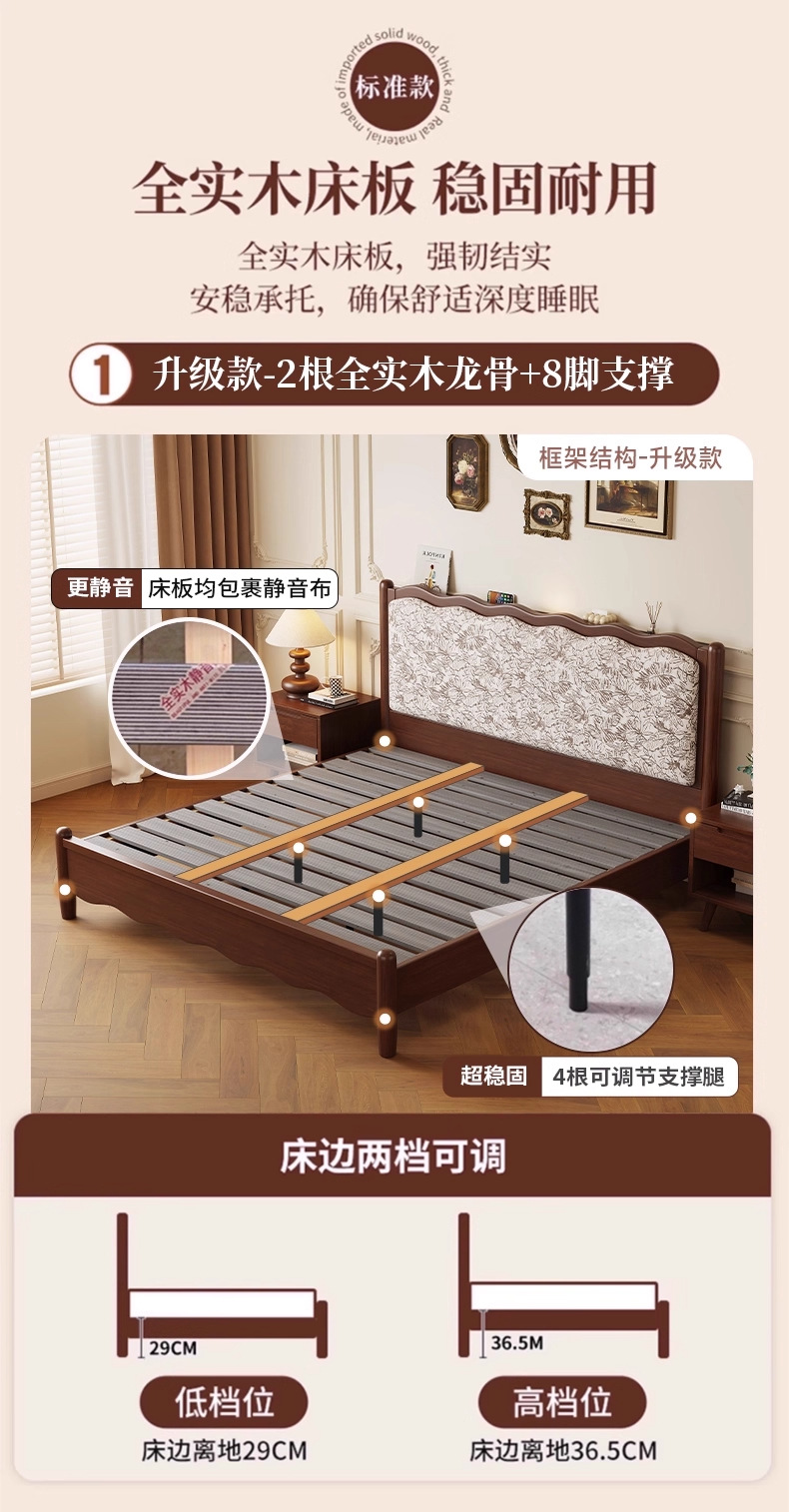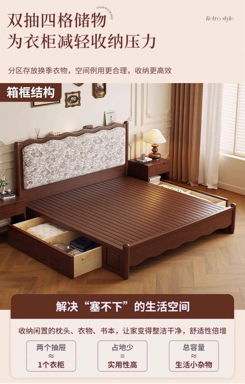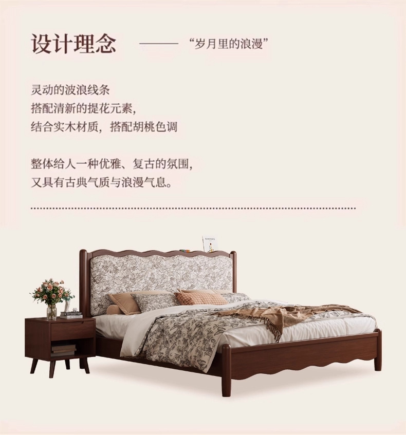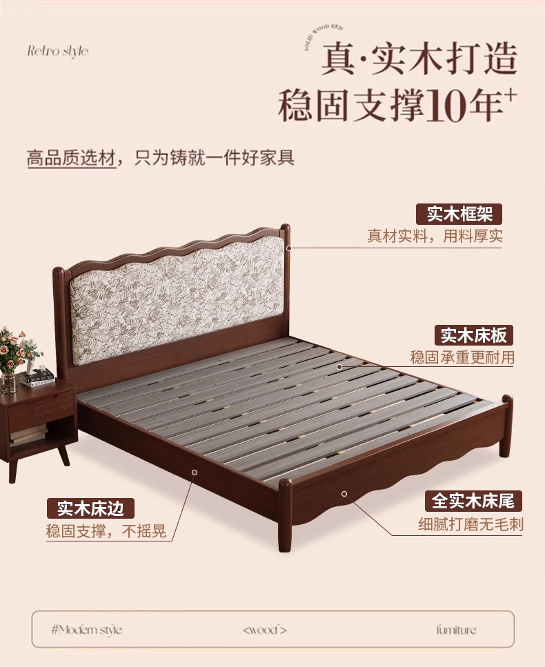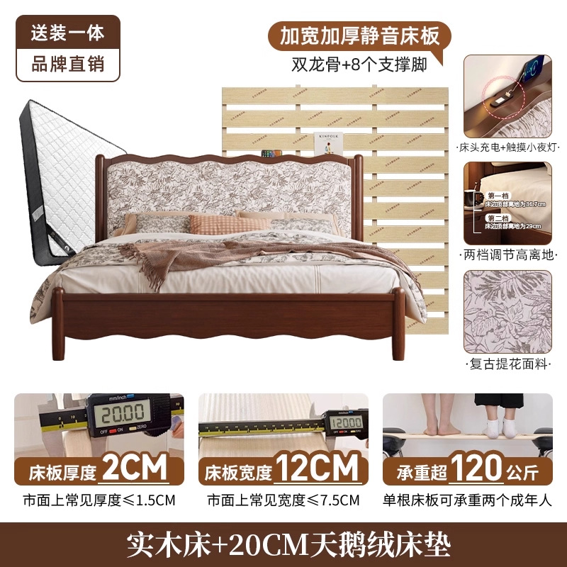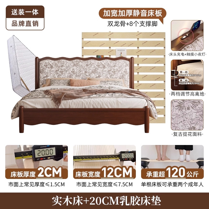 북유럽 모든 단단한 나무 복고풍 더블 침대 1.8 m 웨이브 침대 골동품 침대 1.5 m 간단한 부드러운 가방 웨딩 침대 침실스토어 가기