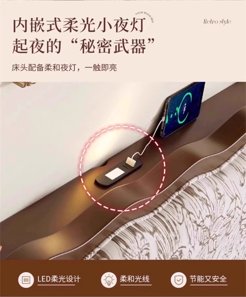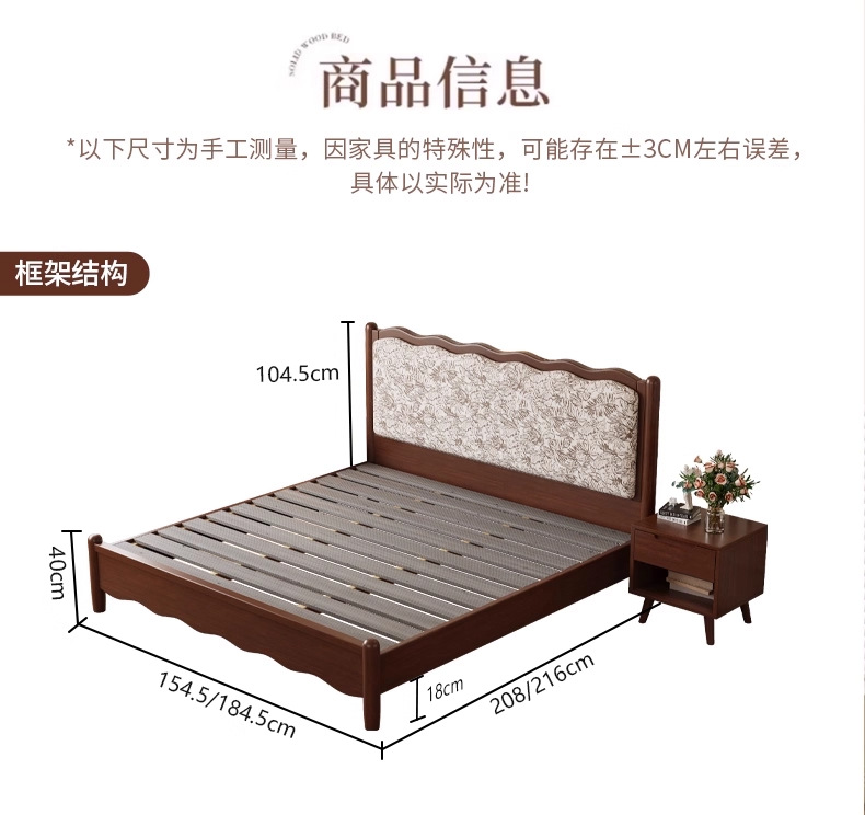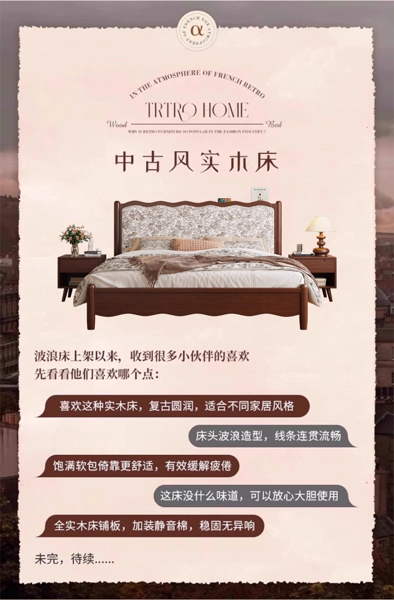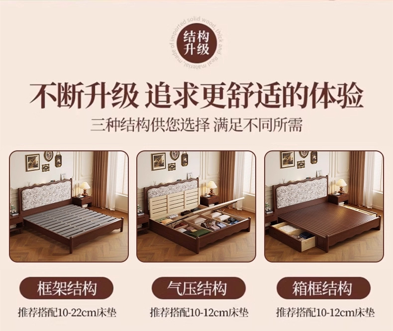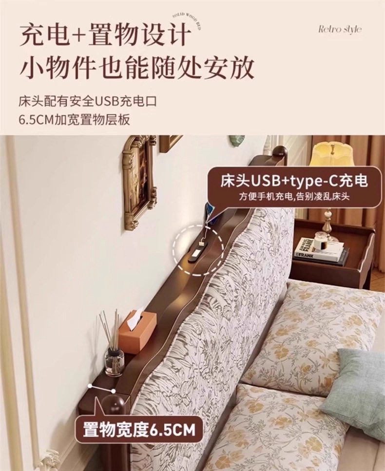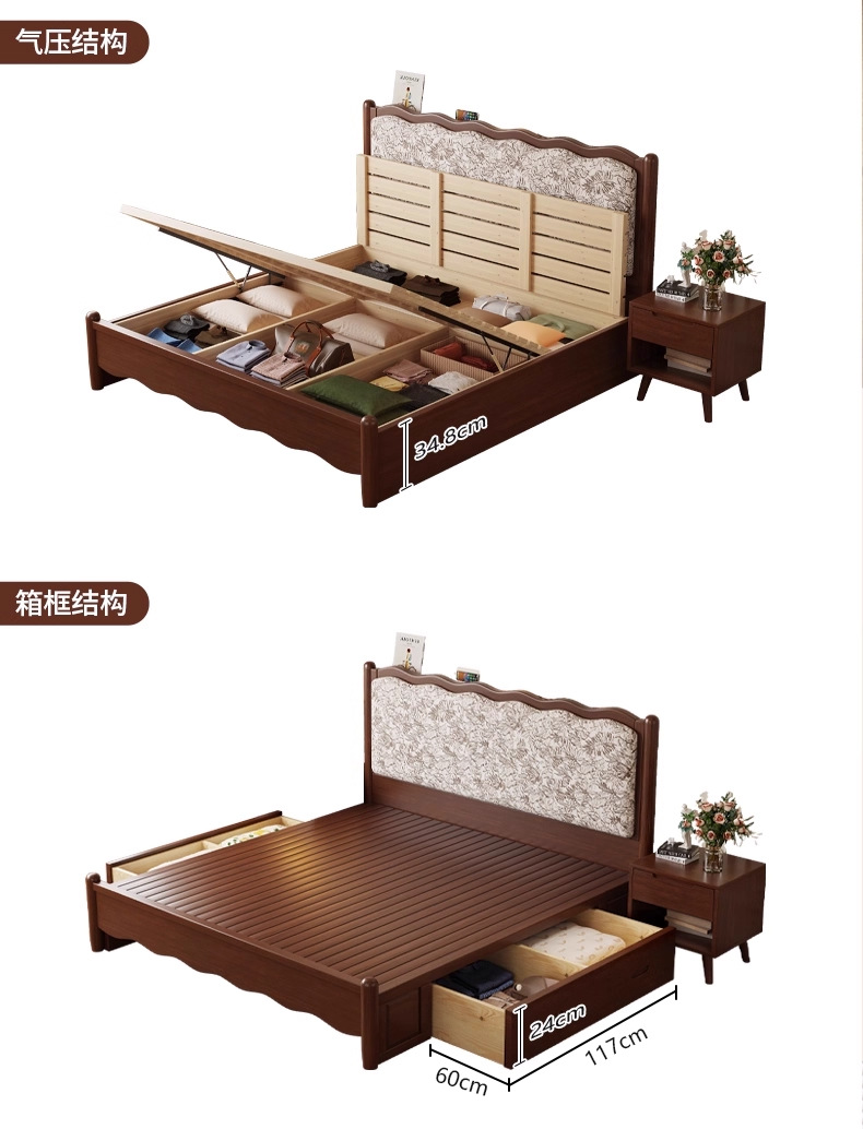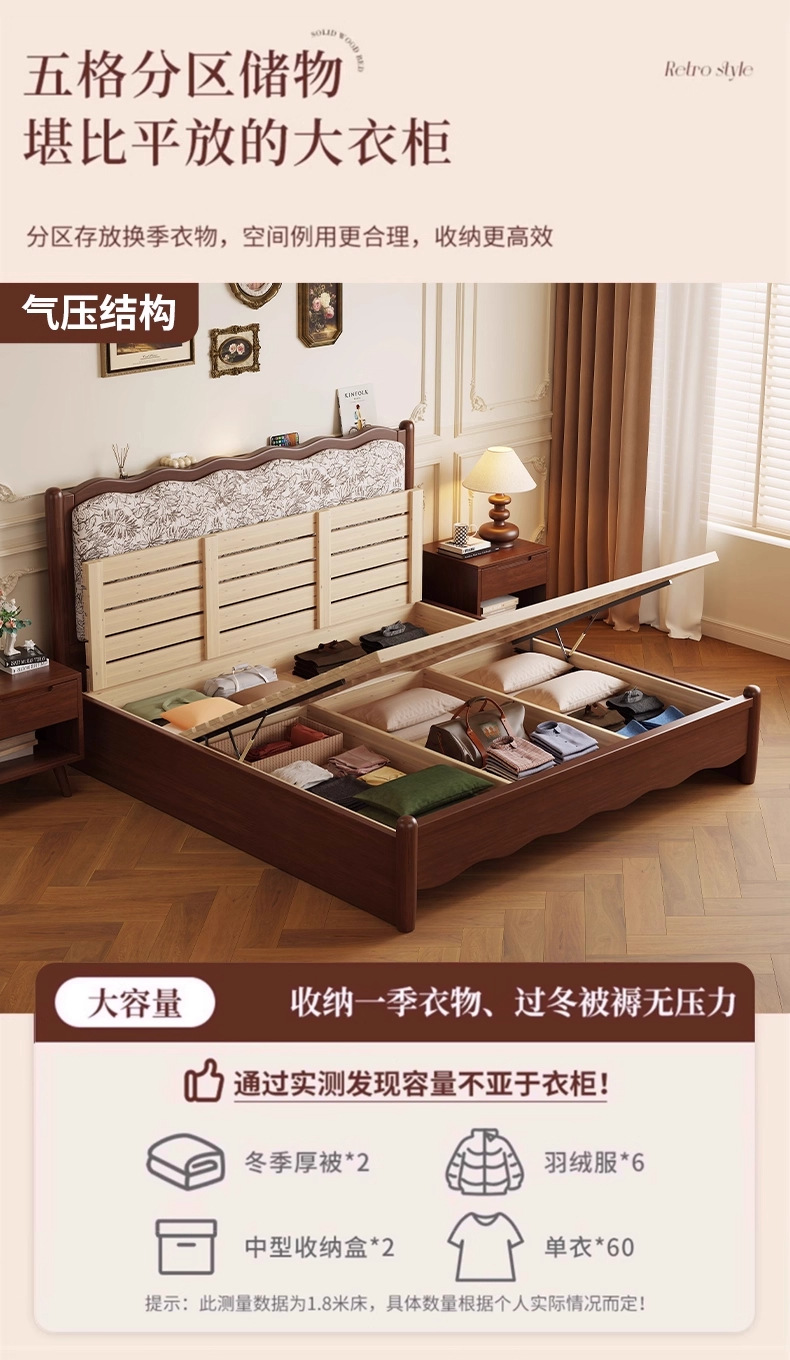 북유럽 모든 단단한 나무 복고풍 더블 침대 1.8 m 웨이브 침대 골동품 침대 1.5 m 간단한 부드러운 가방 웨딩 침대 침실스토어 가기