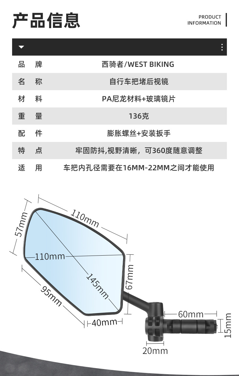 웨스트 바이킹 자전거 백미러 확장 조정 가능한 백미러 산악 자전거 백미러 라이딩 기어