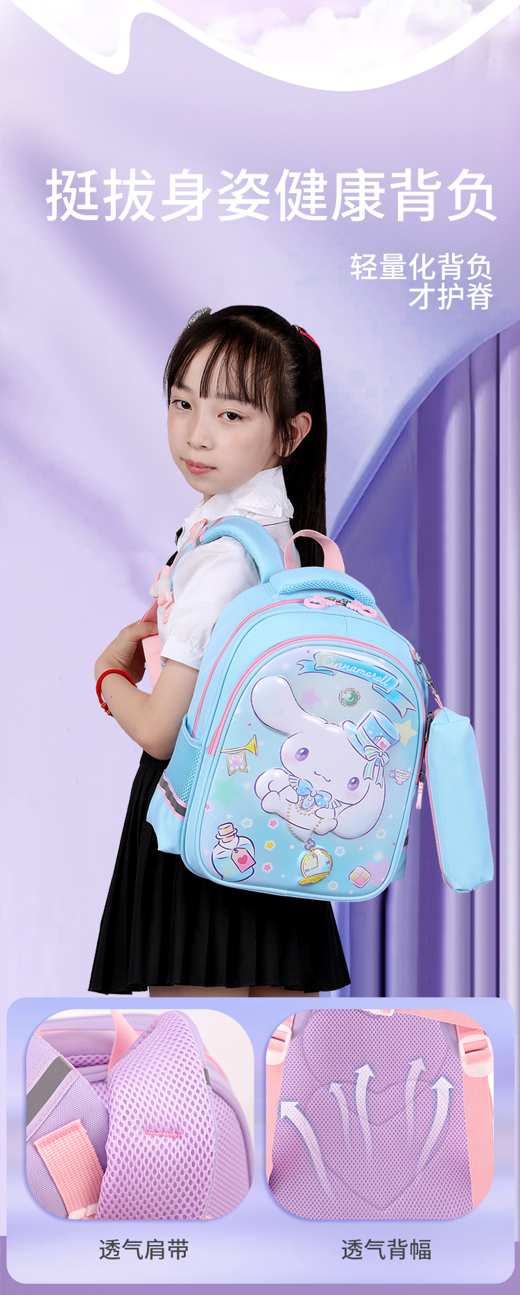 연필 케이스와 어린이 배낭 만화 유치원 아기 학교 가방 소녀 초등학교 1 학년 및 2 학년 배낭스토어 가기