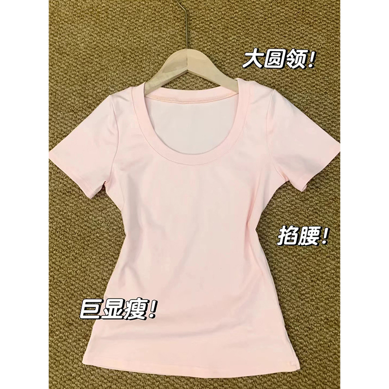블랙 숄더 티셔츠 여성용 반팔 V-Neck 슬림 핏 슬리밍 타이트 허리 디자인베이스 셔츠 미국 핫 걸 탑스토어 가기