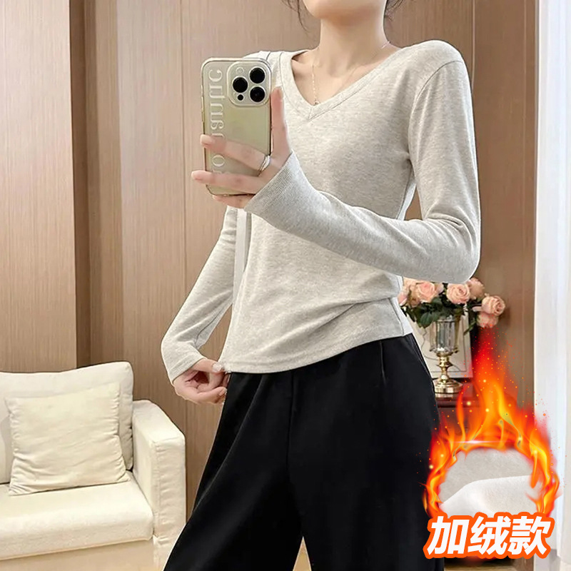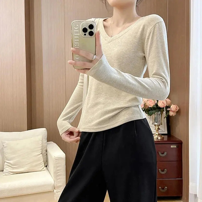 • (V넥 긴소매) 화이트 [플러스벨벳]
