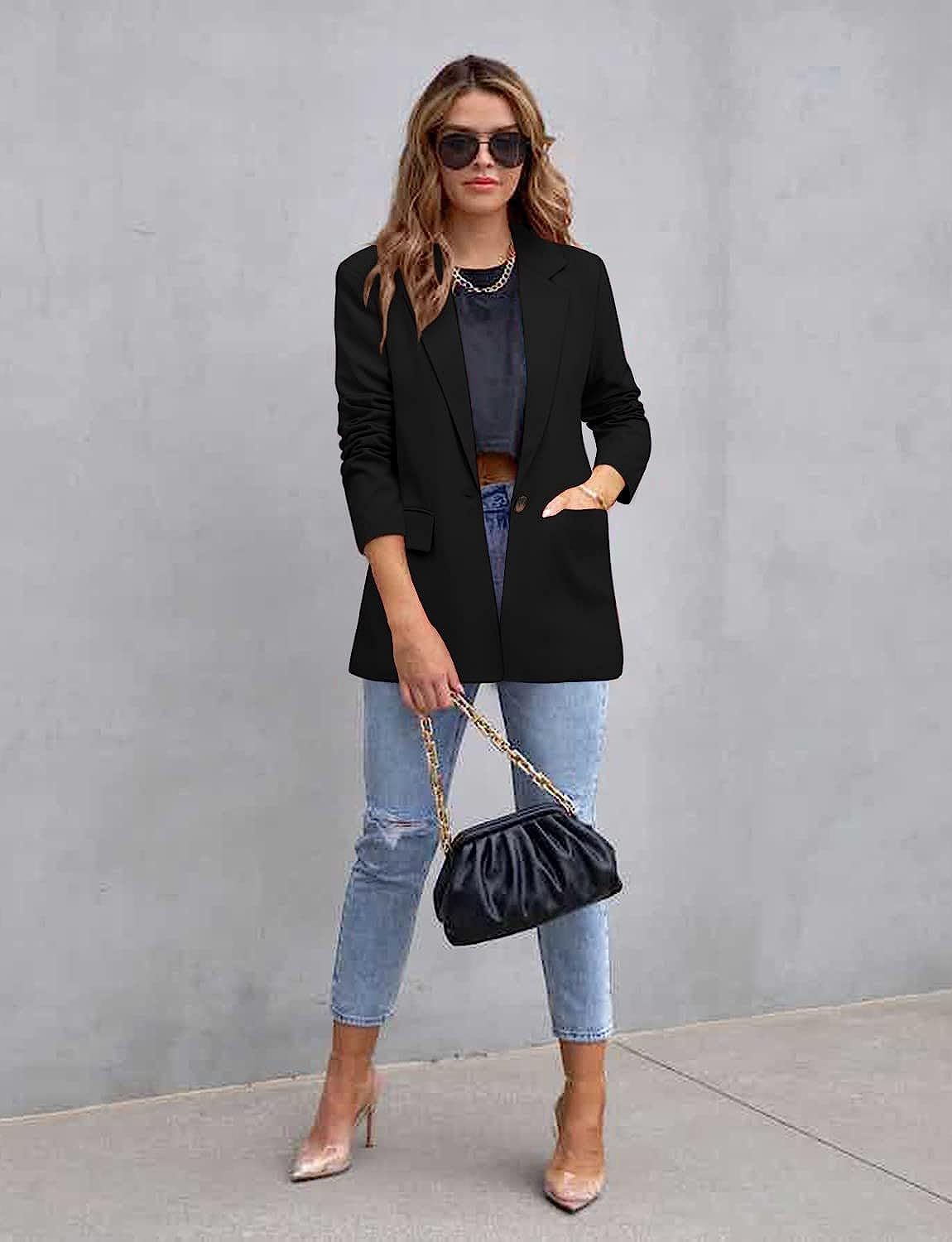 아마존 해외 무역 여성복 2025 가을 겨울 신상 재킷, 우아한 출퇴근 스타일, 슬림핏, 리얼 포켓 정장 재킷