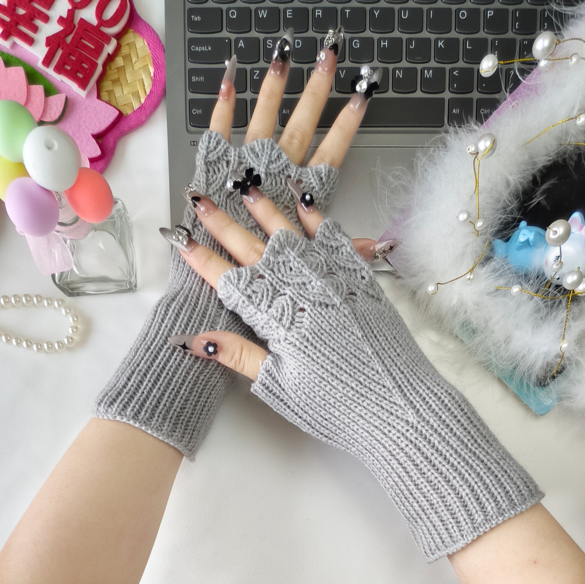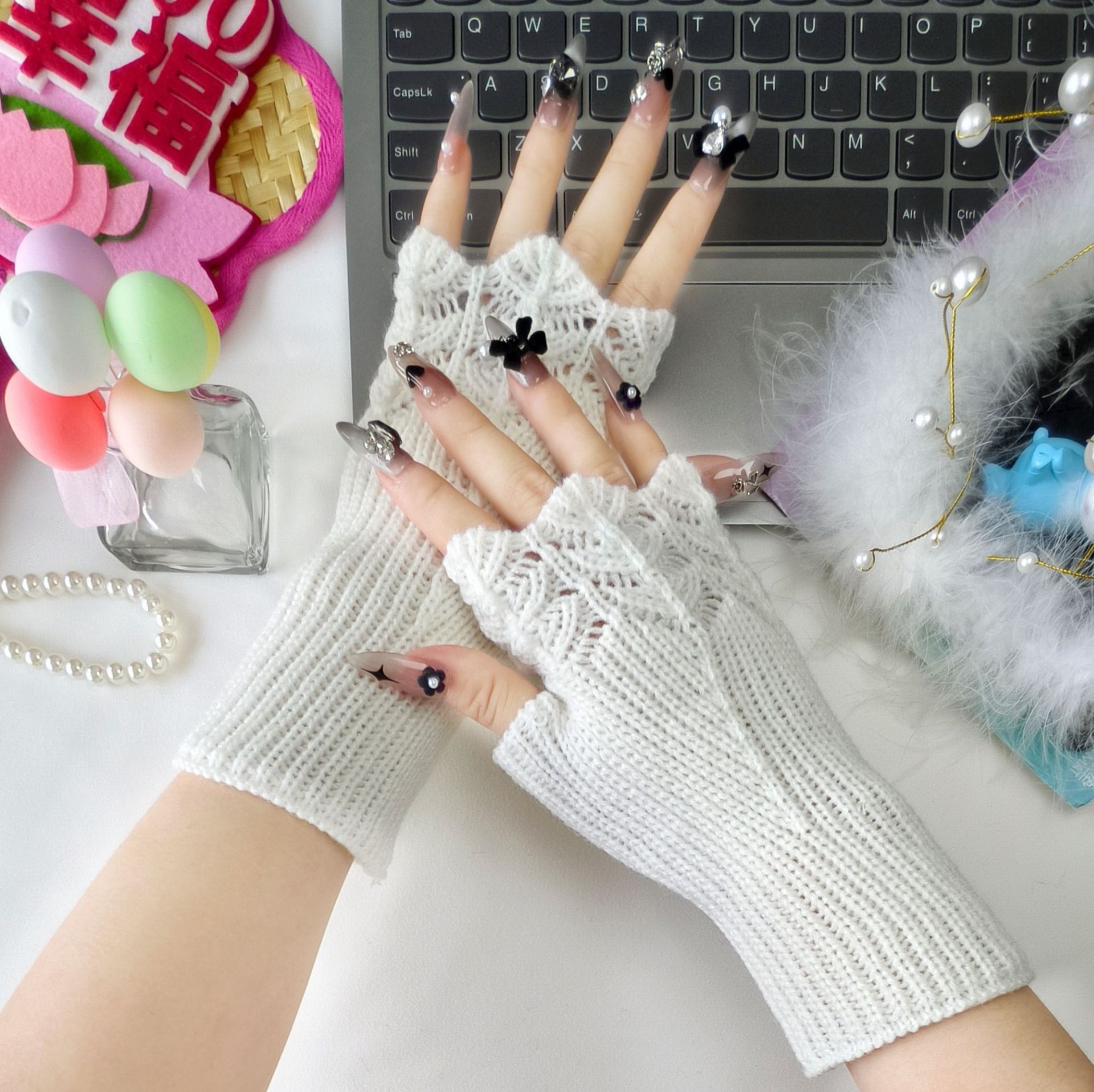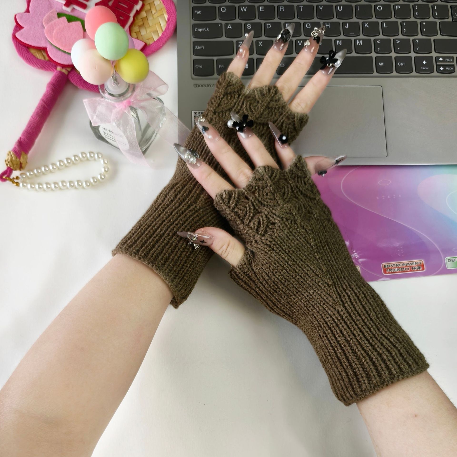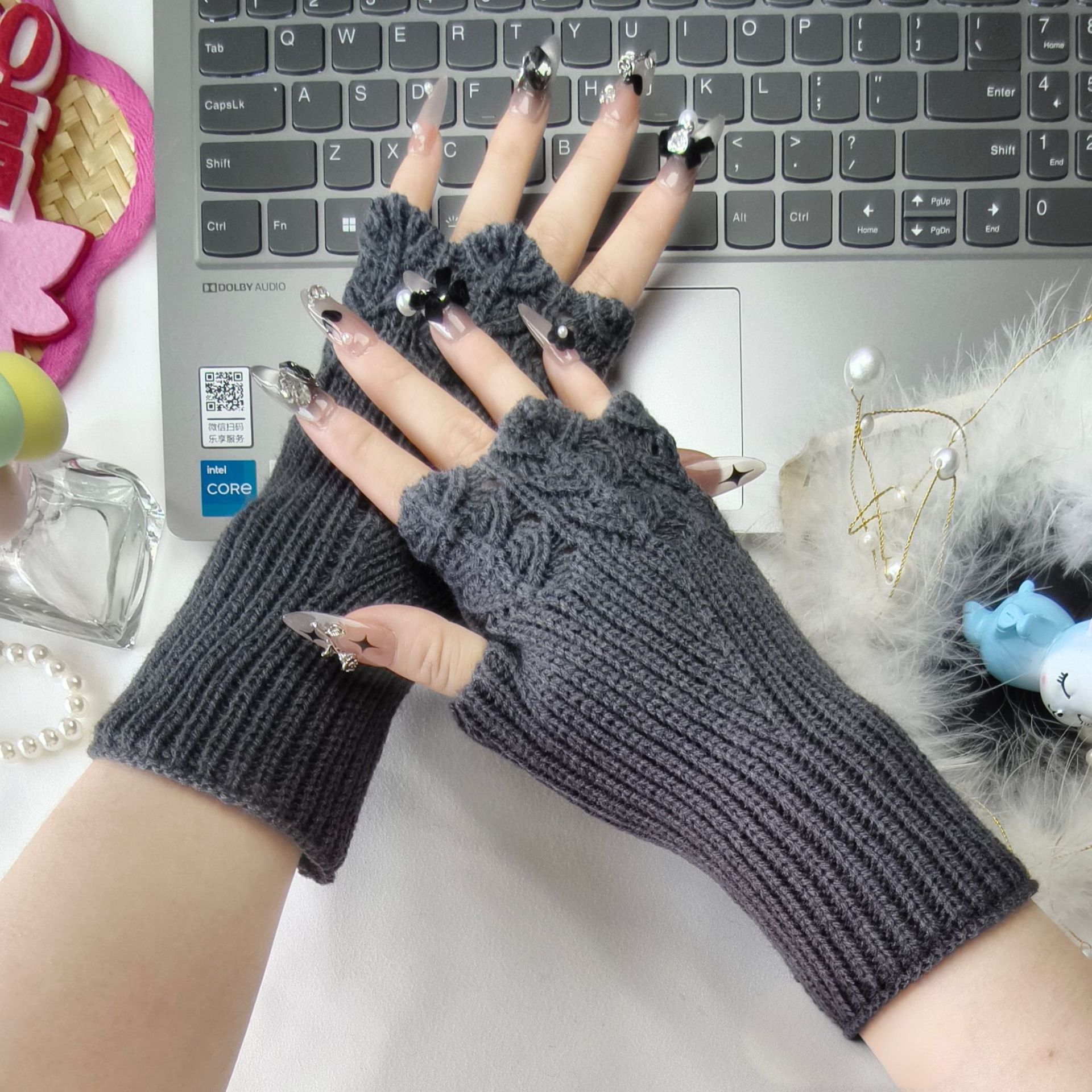 패셔너블한 반손가락 장갑, 니트 울 손가락 없는 슬리브, 남학생과 여학생을 위한 짧은 대학 스타일 따뜻한 손목 및 슬리브 보호대스토어 가기
