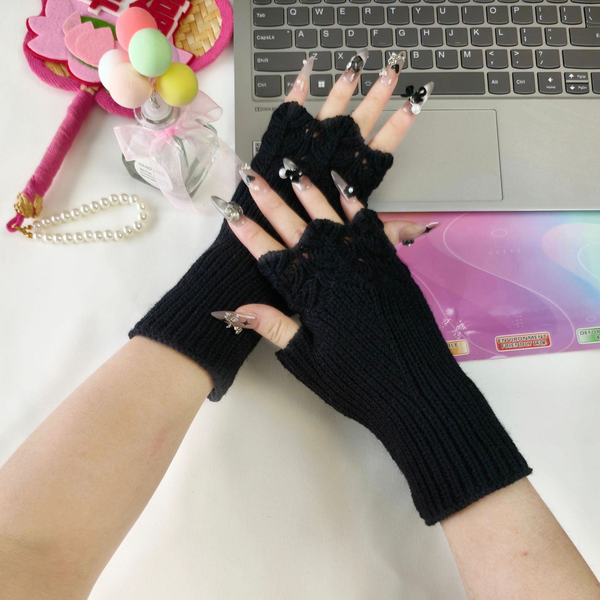 패셔너블한 반손가락 장갑, 니트 울 손가락 없는 슬리브, 남학생과 여학생을 위한 짧은 대학 스타일 따뜻한 손목 및 슬리브 보호대