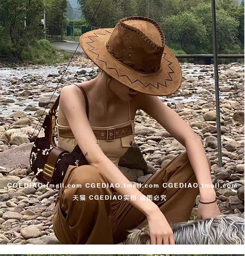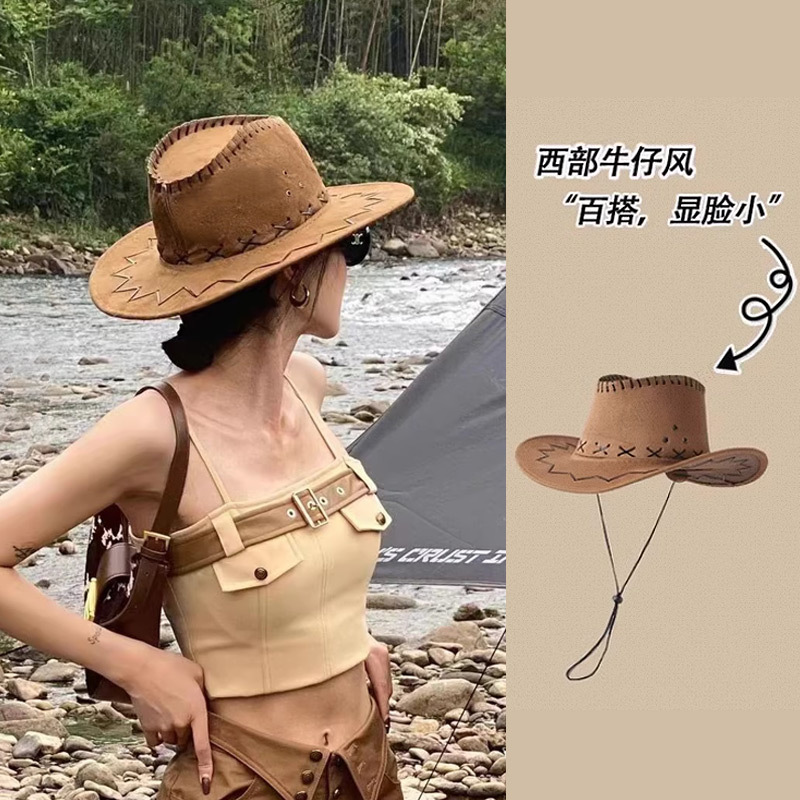 서부 카우보이 모자 어린이 2024 년 새 여름 태양 보호 신장 티베트 윈난 관광 초원 등산 어부 모자스토어 가기