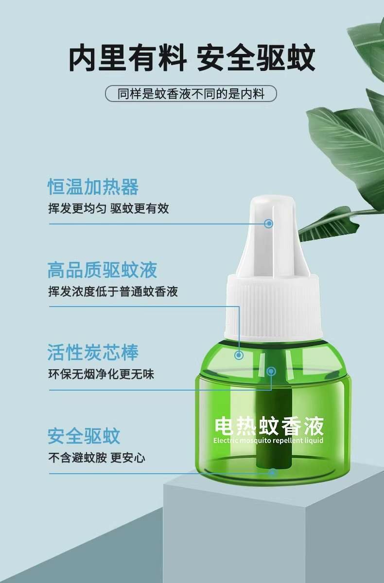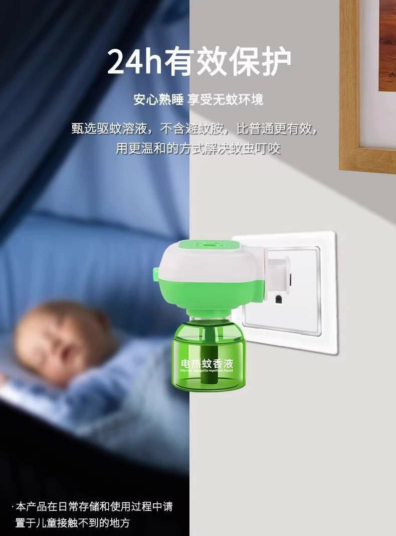 전기 모기향 액체는 무취이며, 아기와 임산부도 사용할 수 있습니다. 전기 모기향 기계는 가정용 모기 퇴치제로, 플러그인 방식으로 작동합니다.스토어 가기