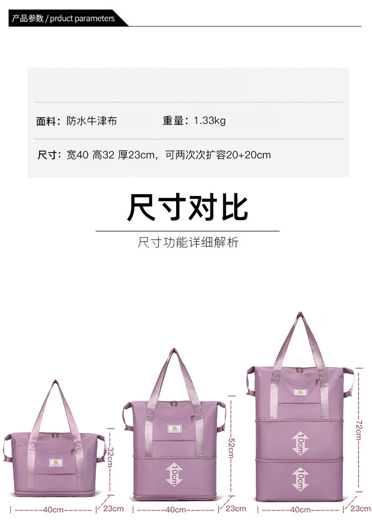 여성용 가볍고 대용량 추가 가방 단거리 보관 용 수하물 가방