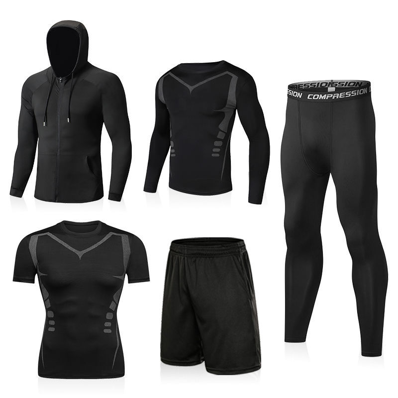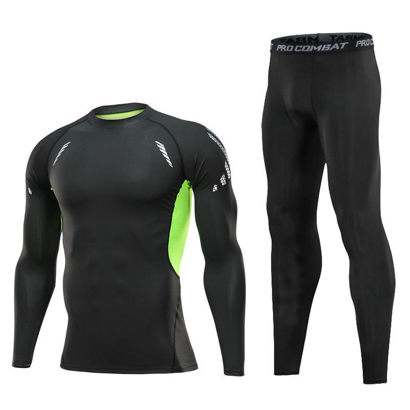 피트니스 옷 남자 스포츠 셔츠 긴 소매 달리기 세트 농구 훈련 옷 타이츠 남자의 빠른 건조 바닥 셔츠 공장