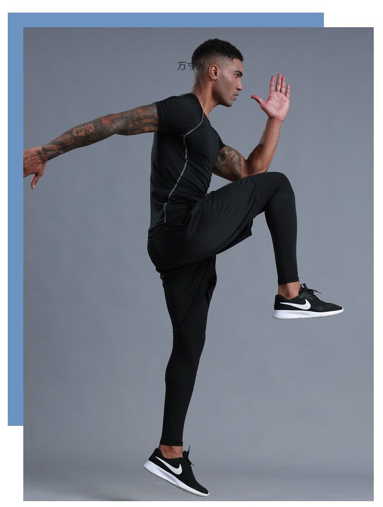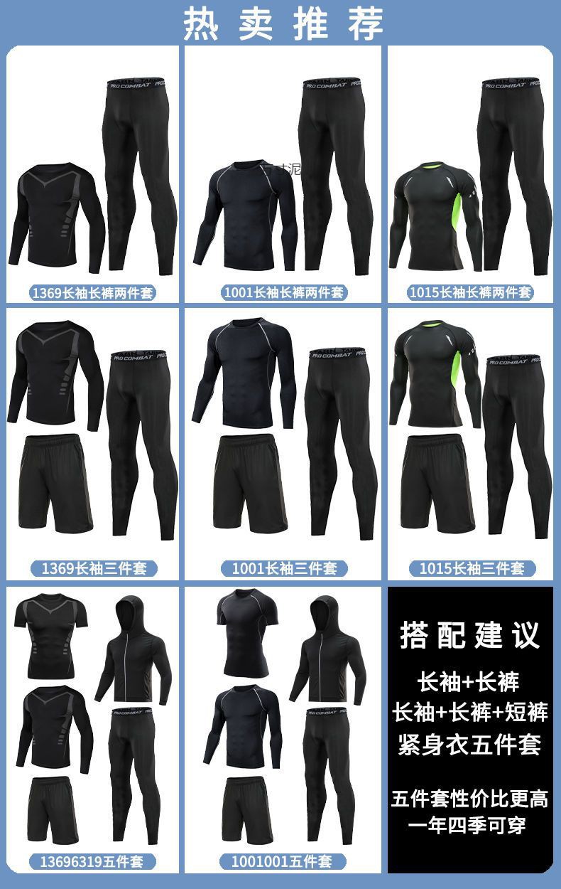 피트니스 옷 남자 스포츠 셔츠 긴 소매 달리기 세트 농구 훈련 옷 타이츠 남자의 빠른 건조 바닥 셔츠 공장스토어 가기