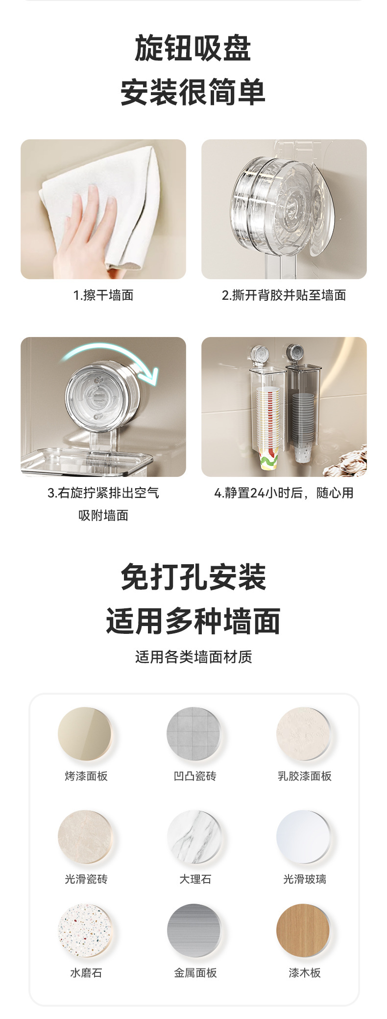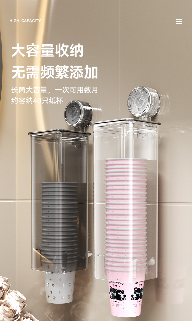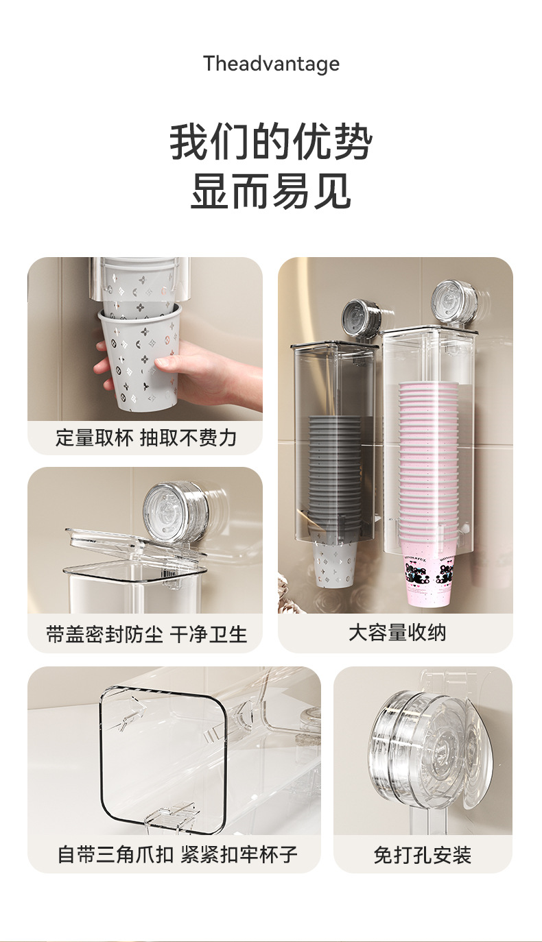 Yimijia 일회용 종이컵 홀더 펀치 프리 컵 테이커 벽 마운트 컵 스토리지 랙 워터 컵 흡입 컵 스토리지 랙