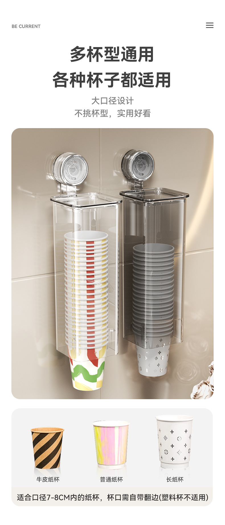 Yimijia 일회용 종이컵 홀더 펀치 프리 컵 테이커 벽 마운트 컵 스토리지 랙 워터 컵 흡입 컵 스토리지 랙스토어 가기