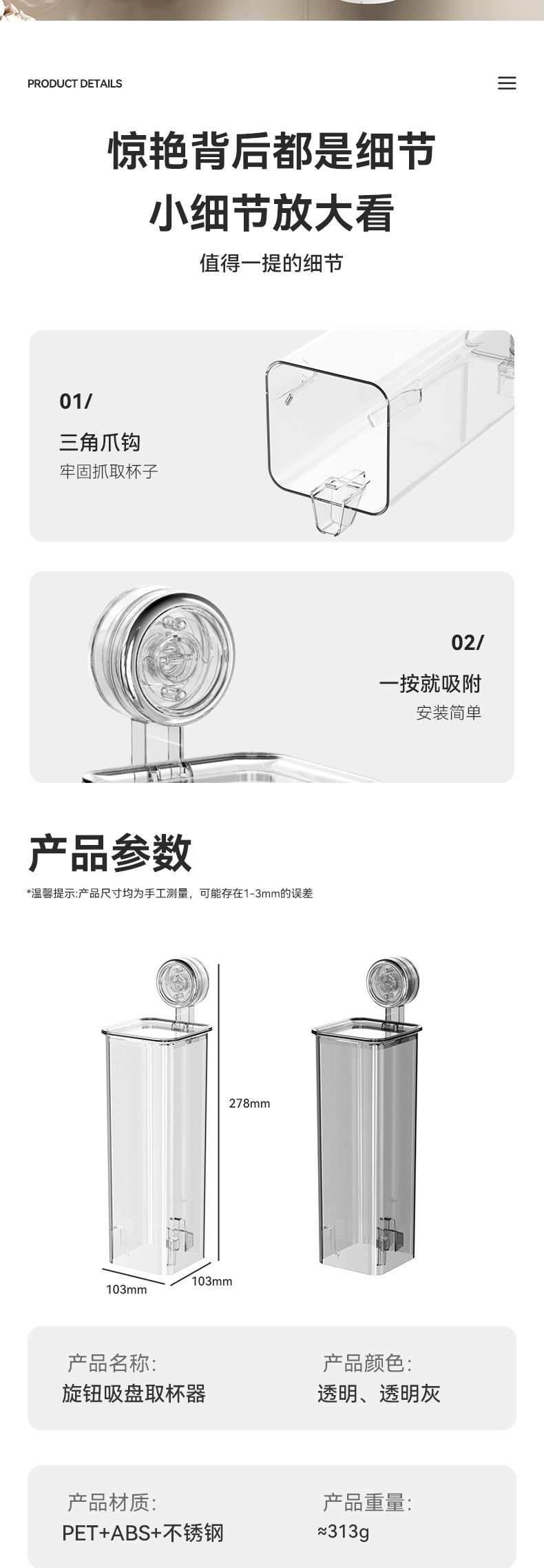 • 흡입 컵 가져 오기 (투명 회색)