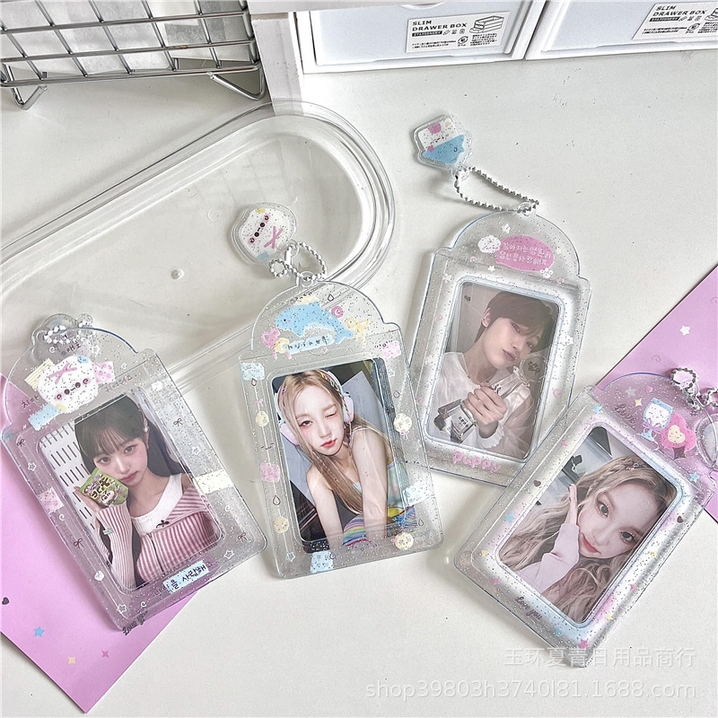 투명 반짝이 PVC 카드 세트 원래 3 인치 스타 쫓는 사랑 콩 작은 카드 식사 카드 캠퍼스 카드 저장 카드 가방 디스플레이 펜던트