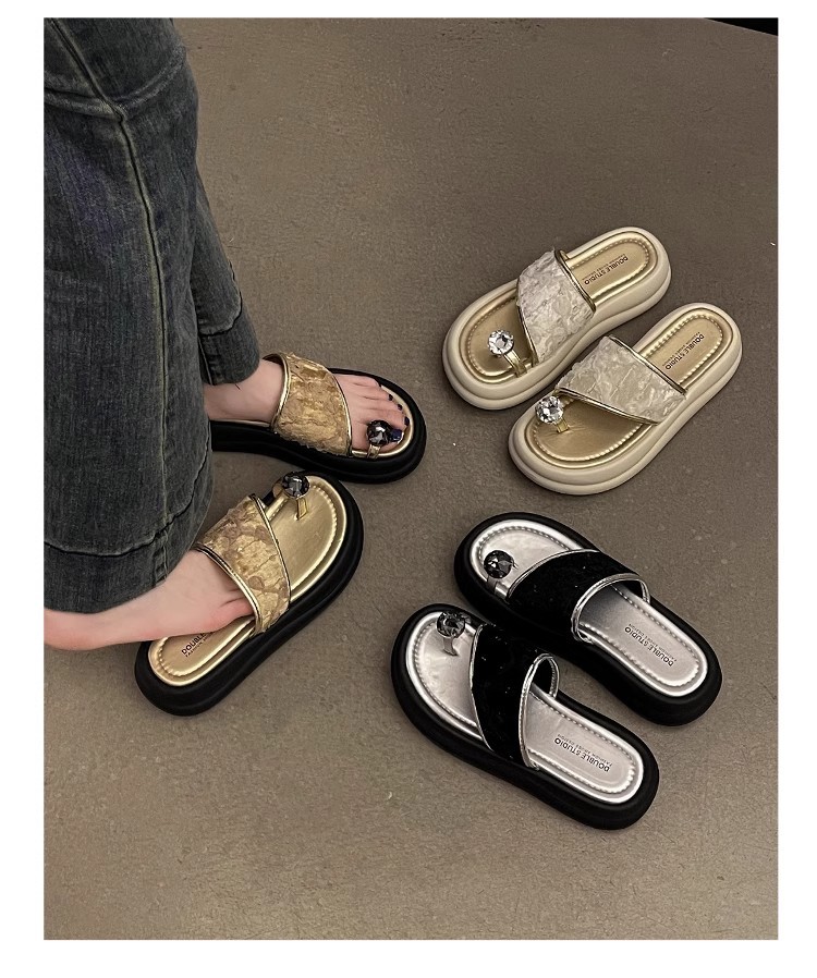 2024 여름 새로운 패션 편안한 캐주얼 여성 두꺼운 바닥 강화 플립 플롭스 여성용 외형 샌들 트렌디스토어 가기
