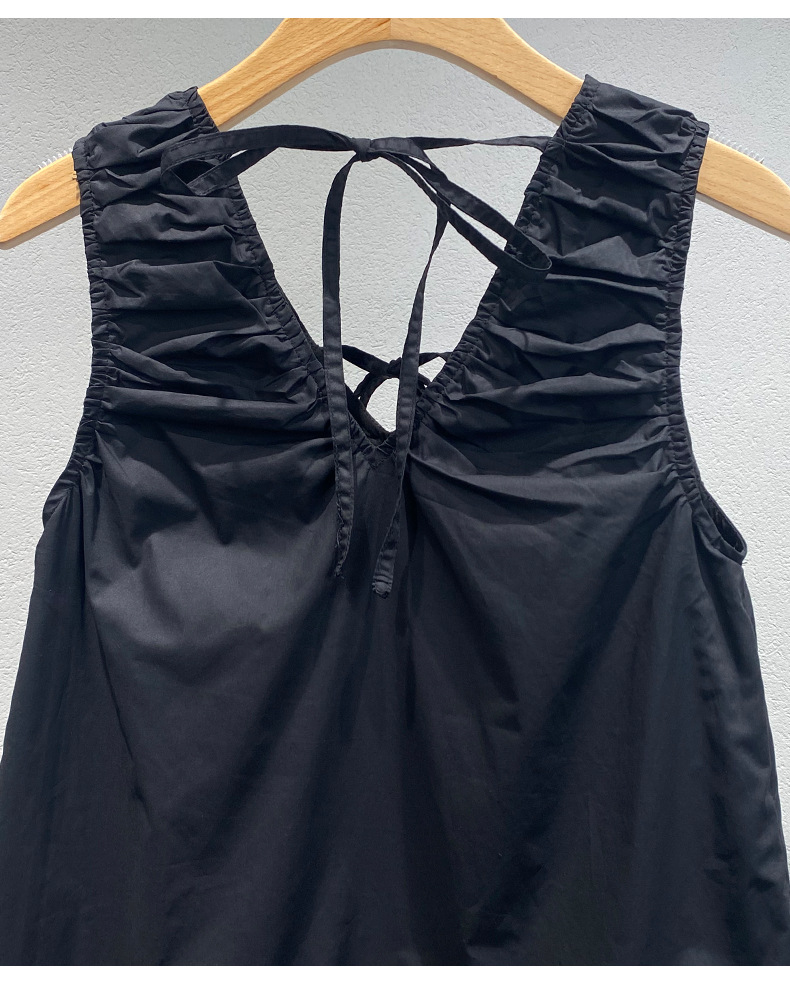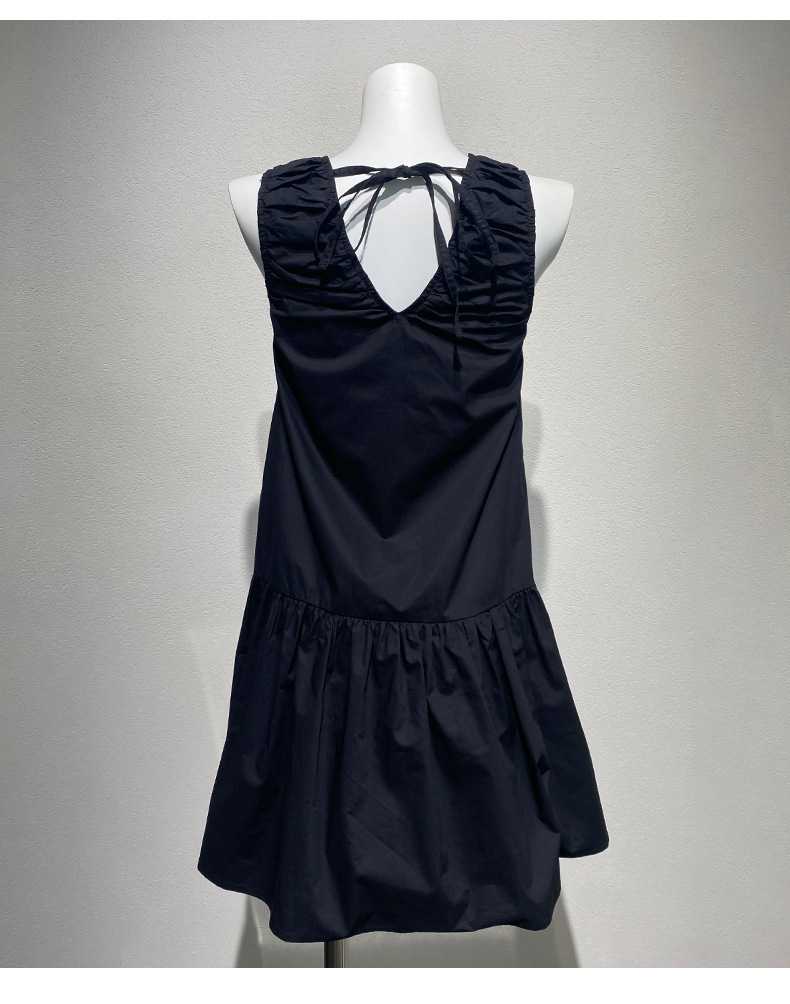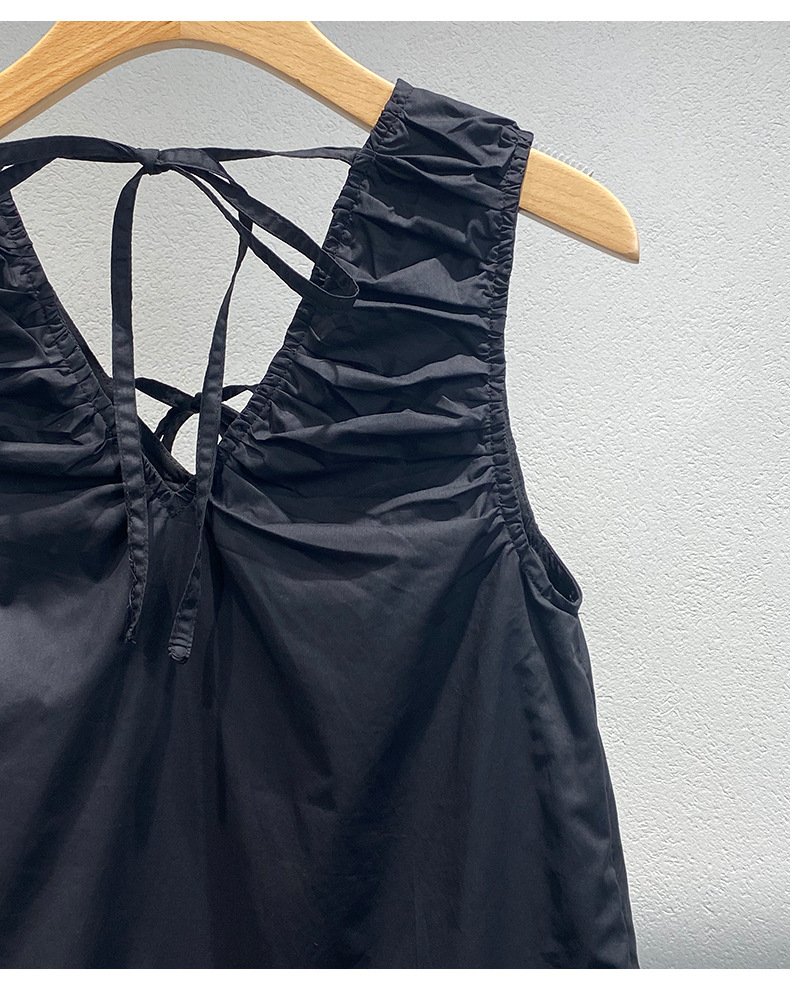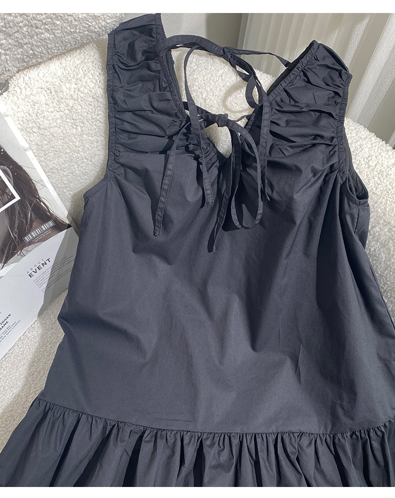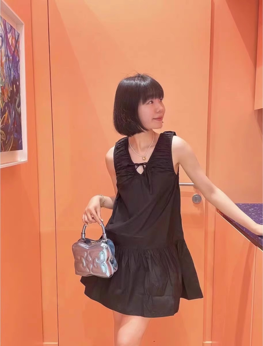 Xiaozhong 2024 여름 새로운 블랙 V 넥 슬림 핏 레이스 업 민소매 짧은 원피스 여성