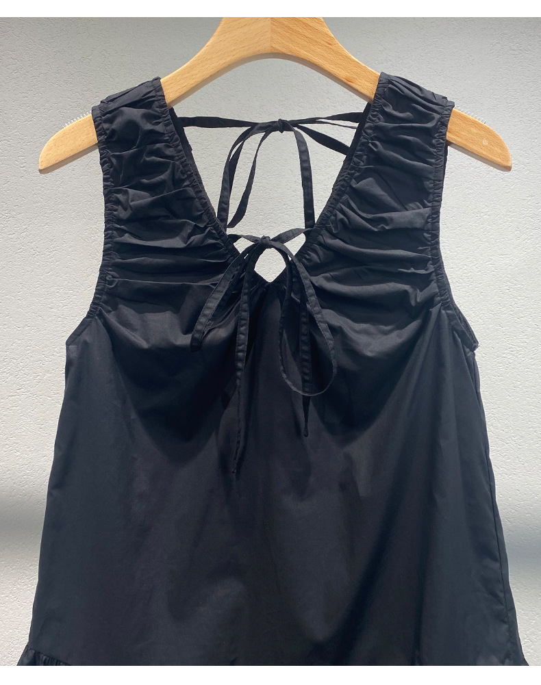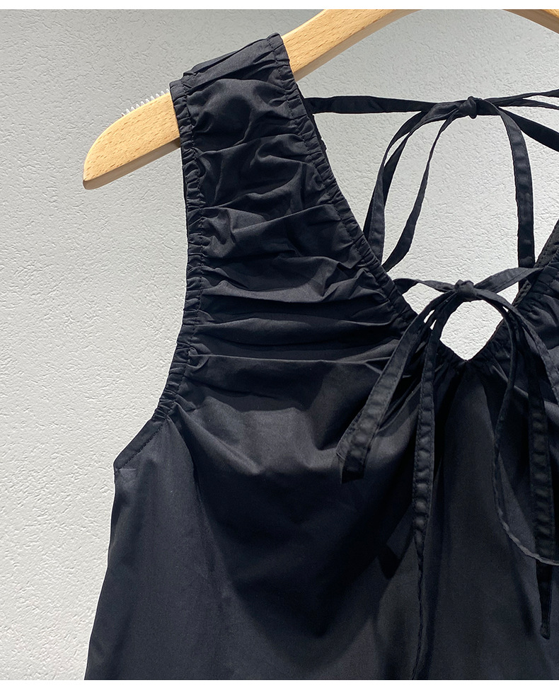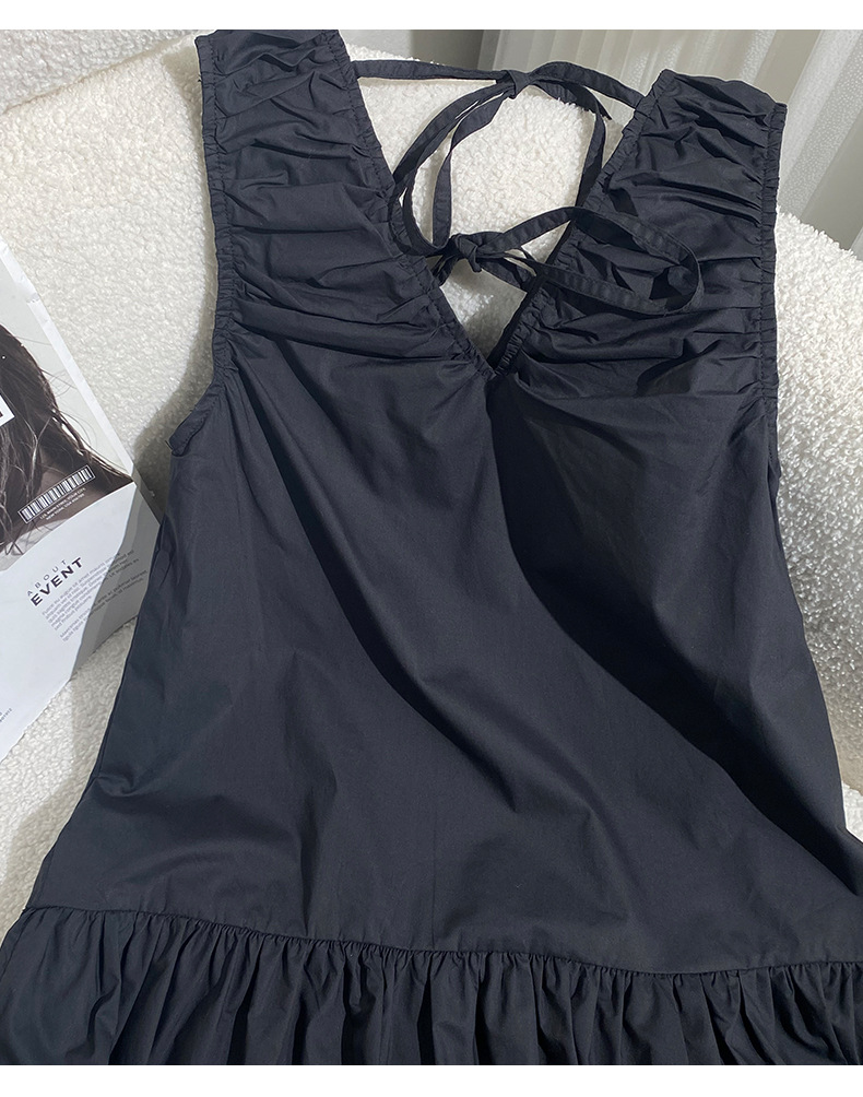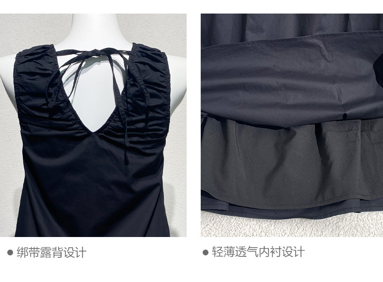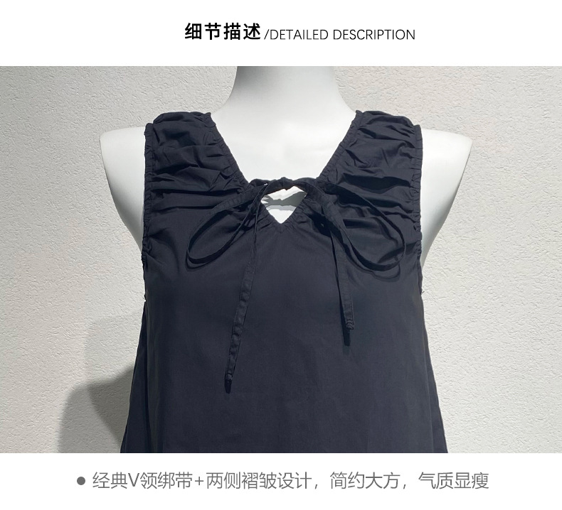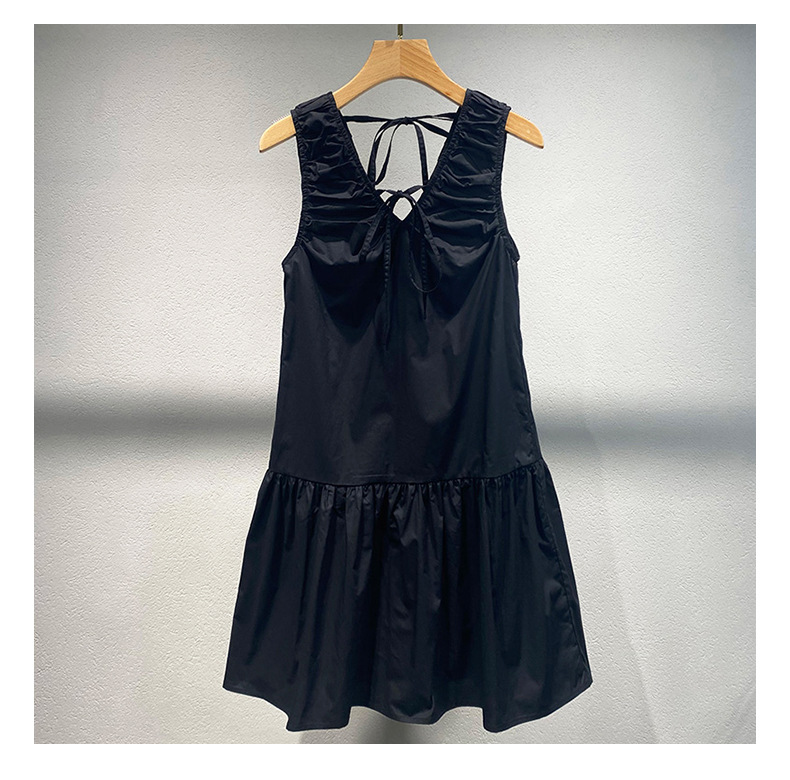 Xiaozhong 2024 여름 새로운 블랙 V 넥 슬림 핏 레이스 업 민소매 짧은 원피스 여성스토어 가기