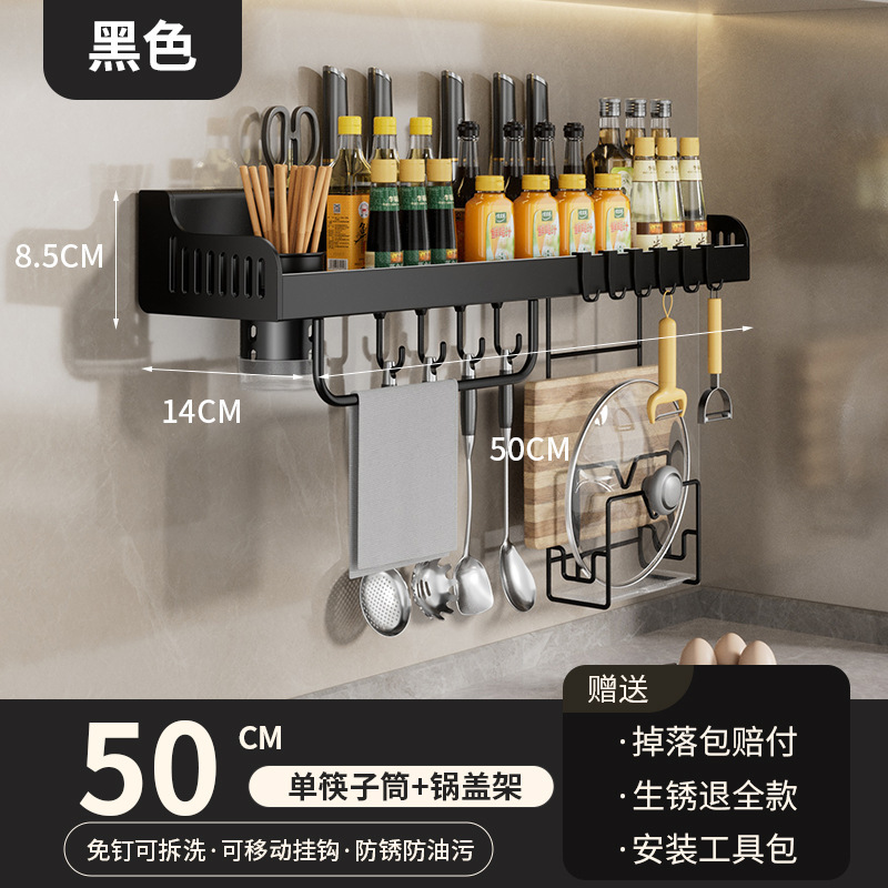 • 냄비 덮개가있는 칼 홀더가있는 50CM 스파이스 랙 [블랙]]
