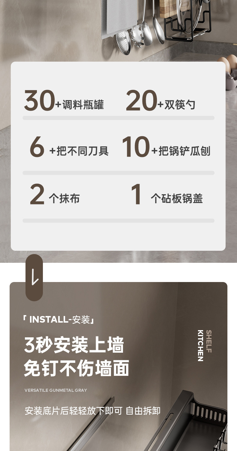 주방 조미료 랙 펀치 프리 스토리지 랙 가정용 다기능 벽 장착 조미료 스토리지 랙 통합 나이프 랙 걸이스토어 가기