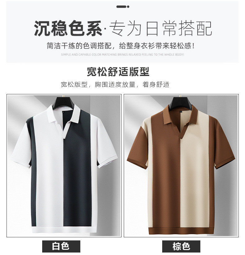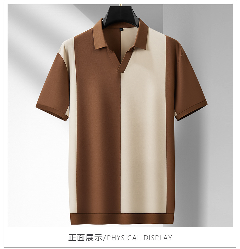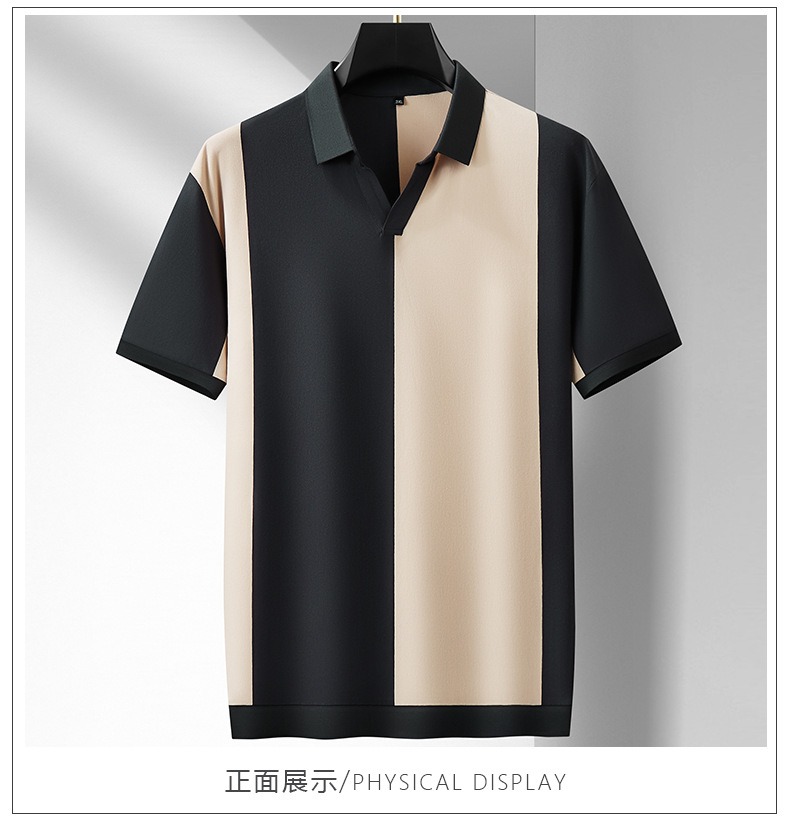 여름 유행 남성 티셔츠 엑스트라 대형 캐주얼 라이트 럭셔리 패션 남성용 반팔 폴로 셔츠 컬러 블록 티셔츠