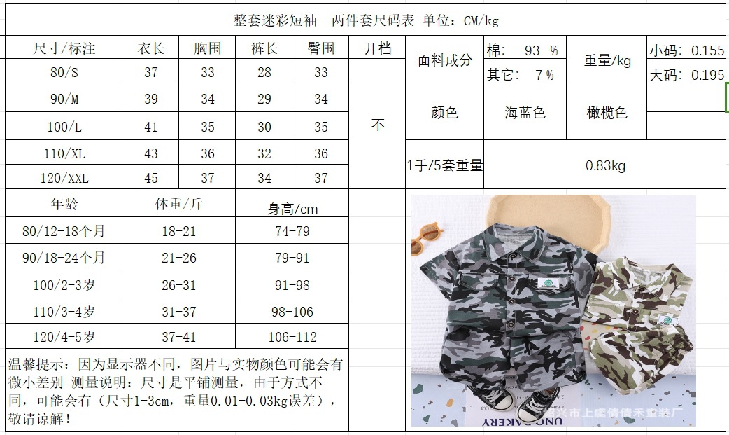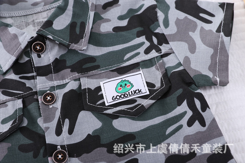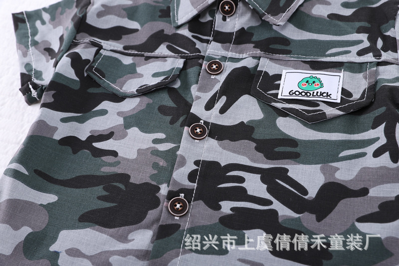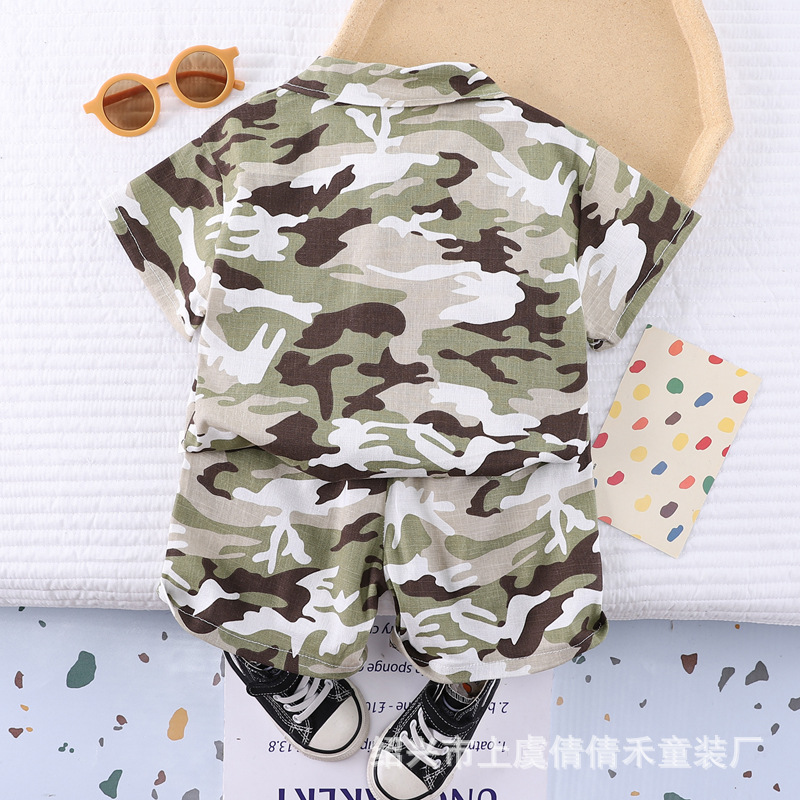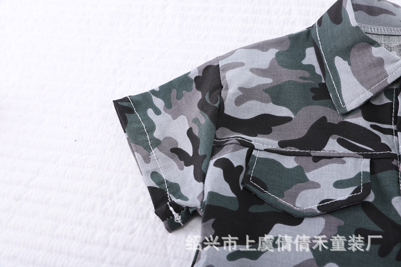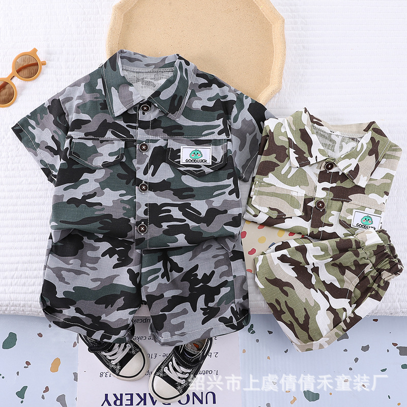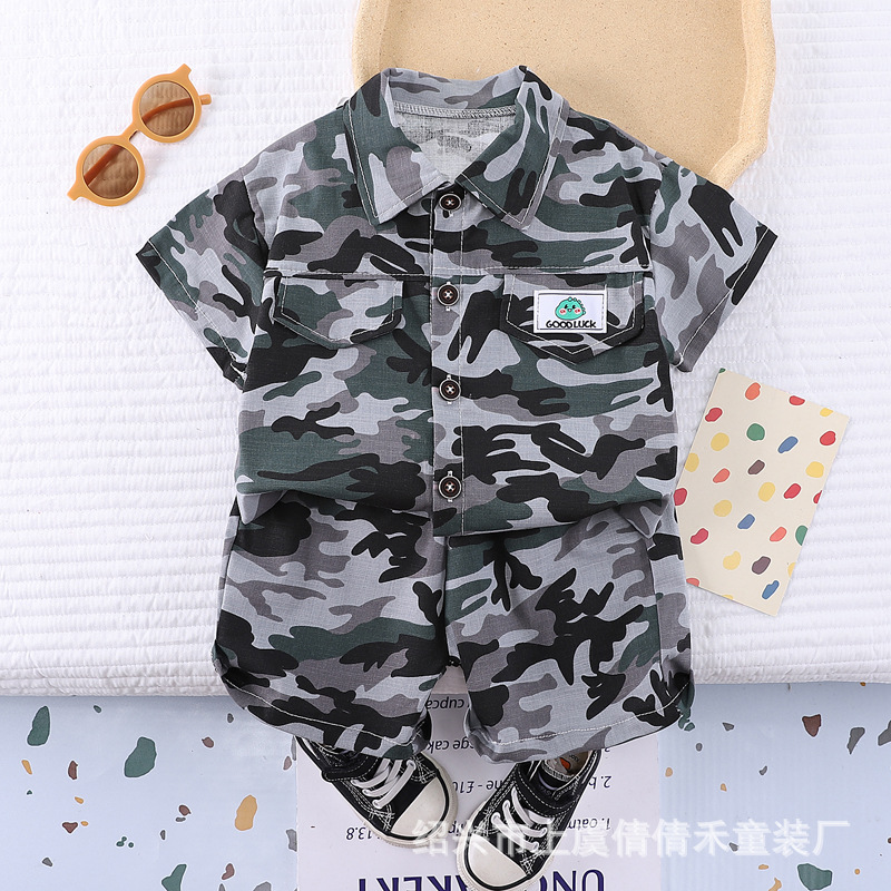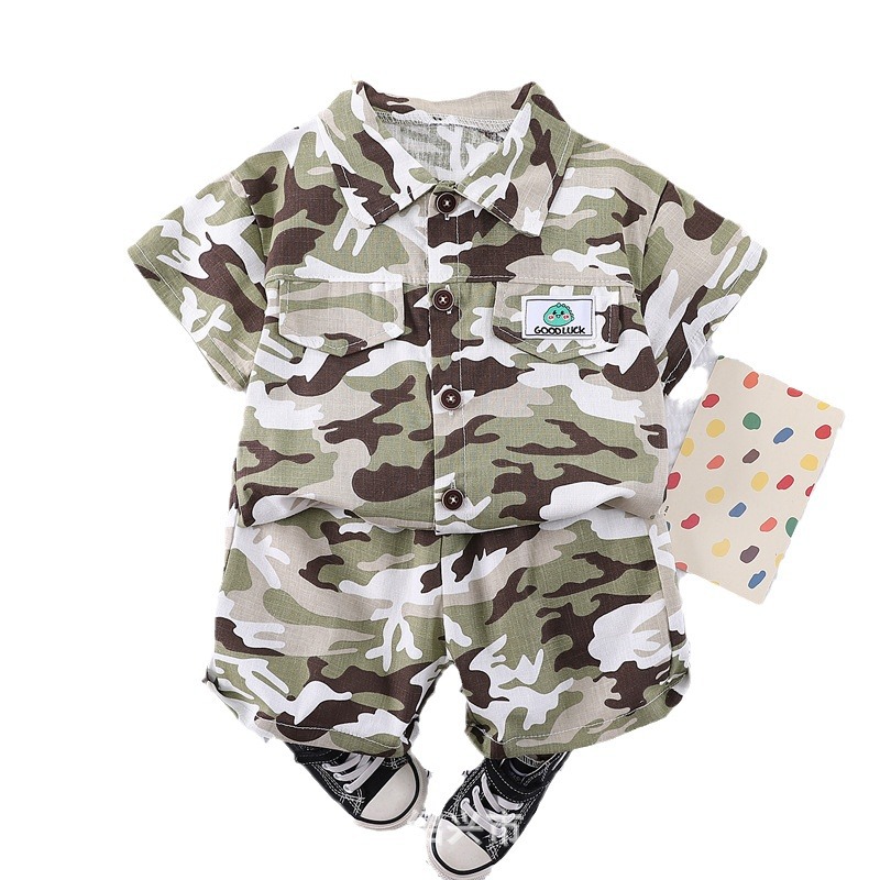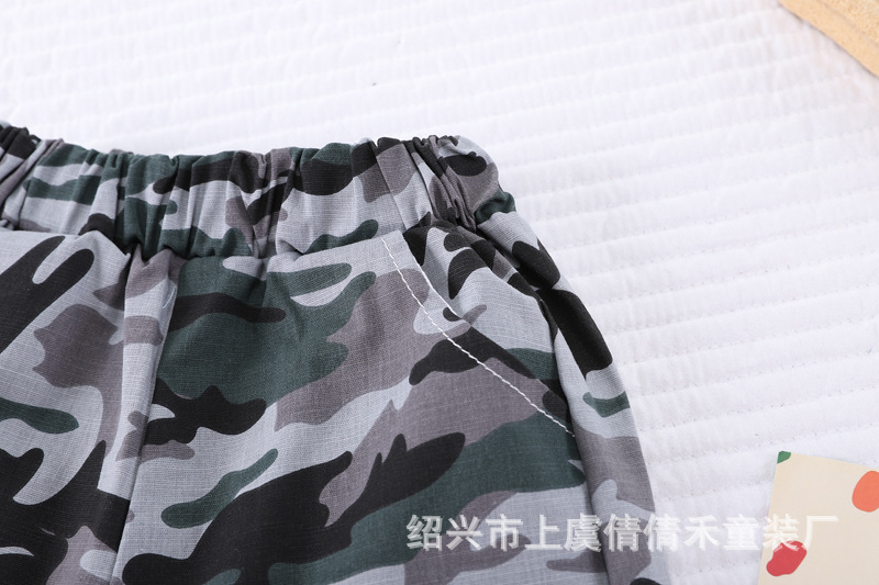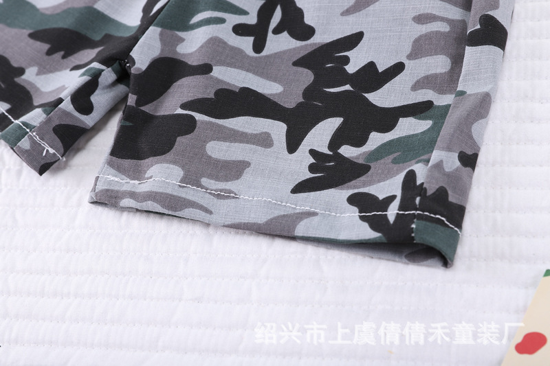 여름 어린이 반팔 세트 의류 새로운 도착 여름 옷 소년 인쇄 반바지 아기 위장 투피스 세트스토어 가기