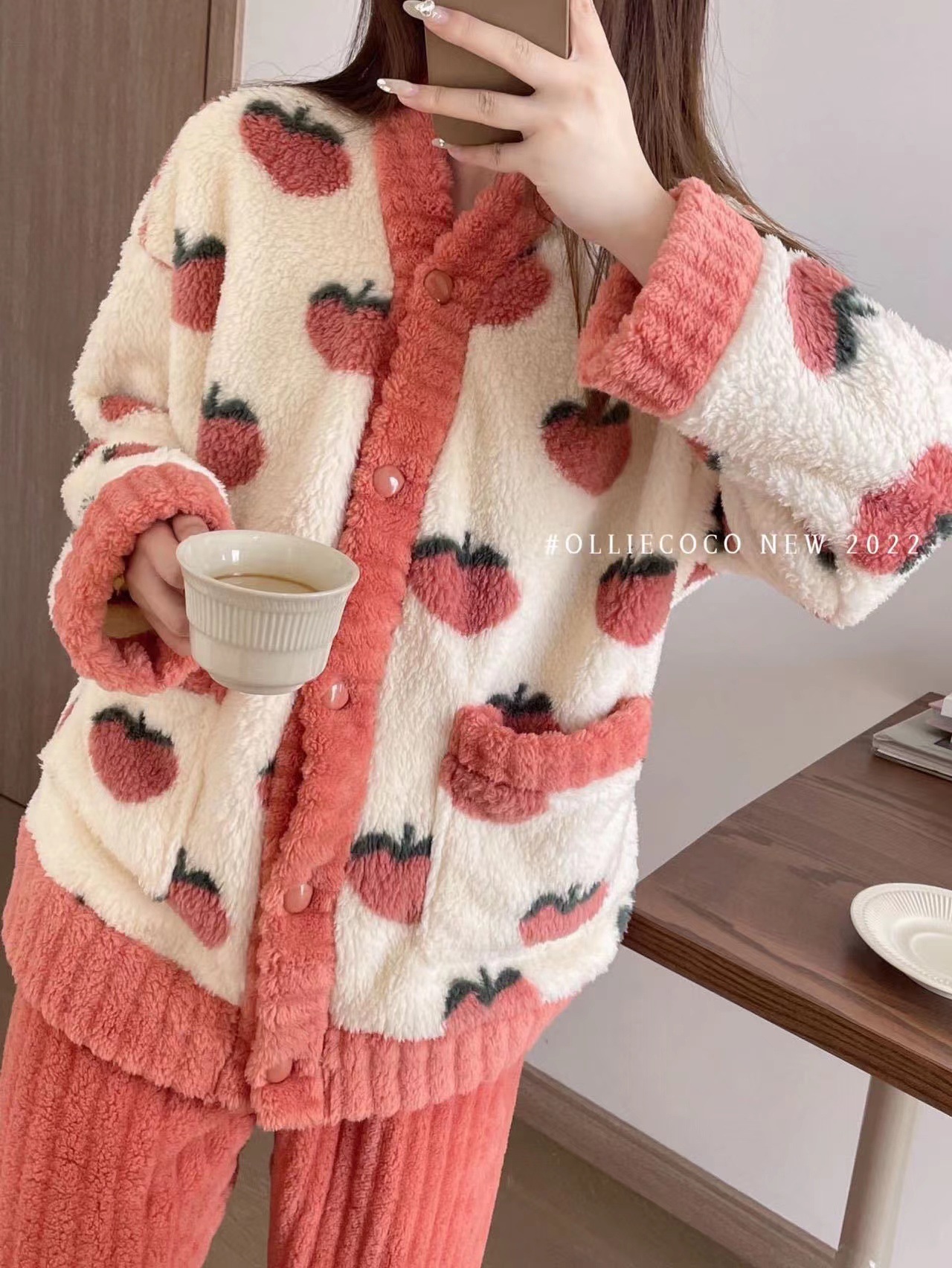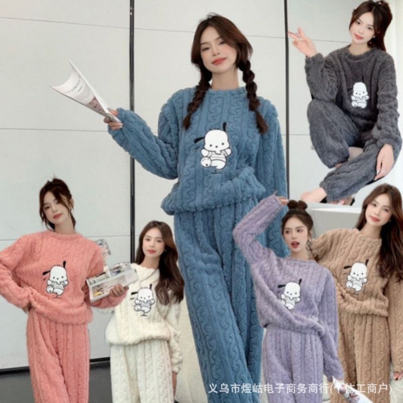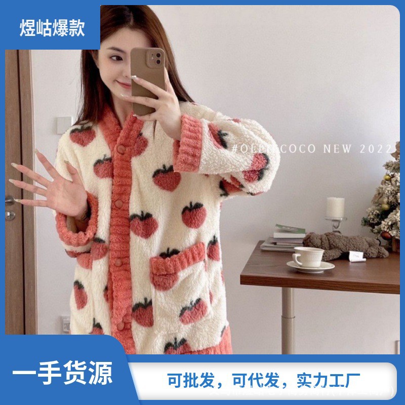 가을 겨울 잠옷 여성의 높은 가치 기모 두껍게 따뜻한 느슨한 외부 착용 홈 의류 세트 산호 양털 새로운스토어 가기