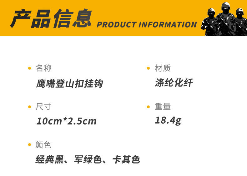 品名:多功能织带挂扣/双层尼龙molle挂钩