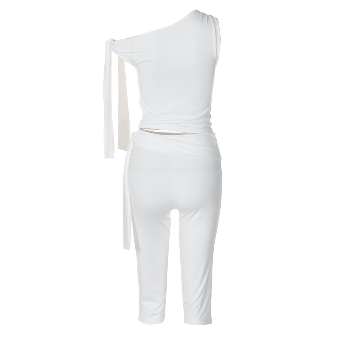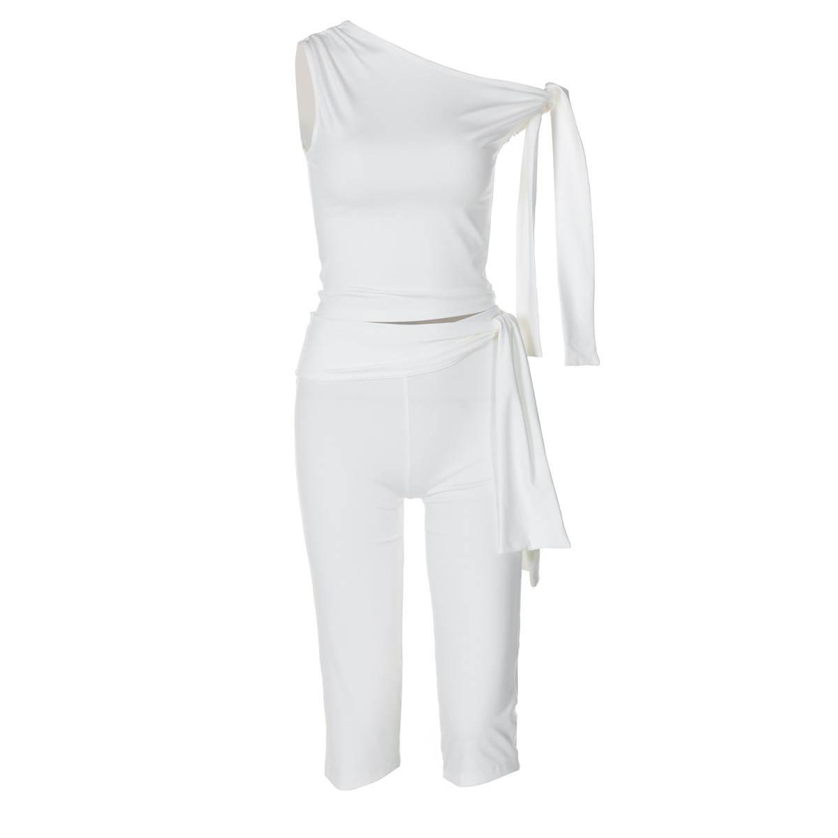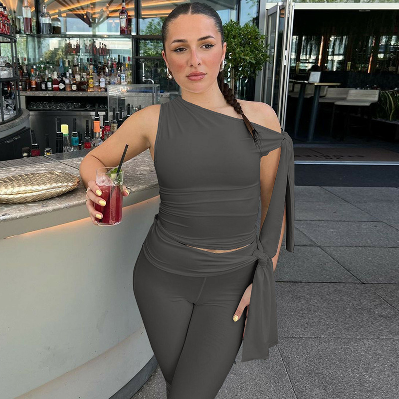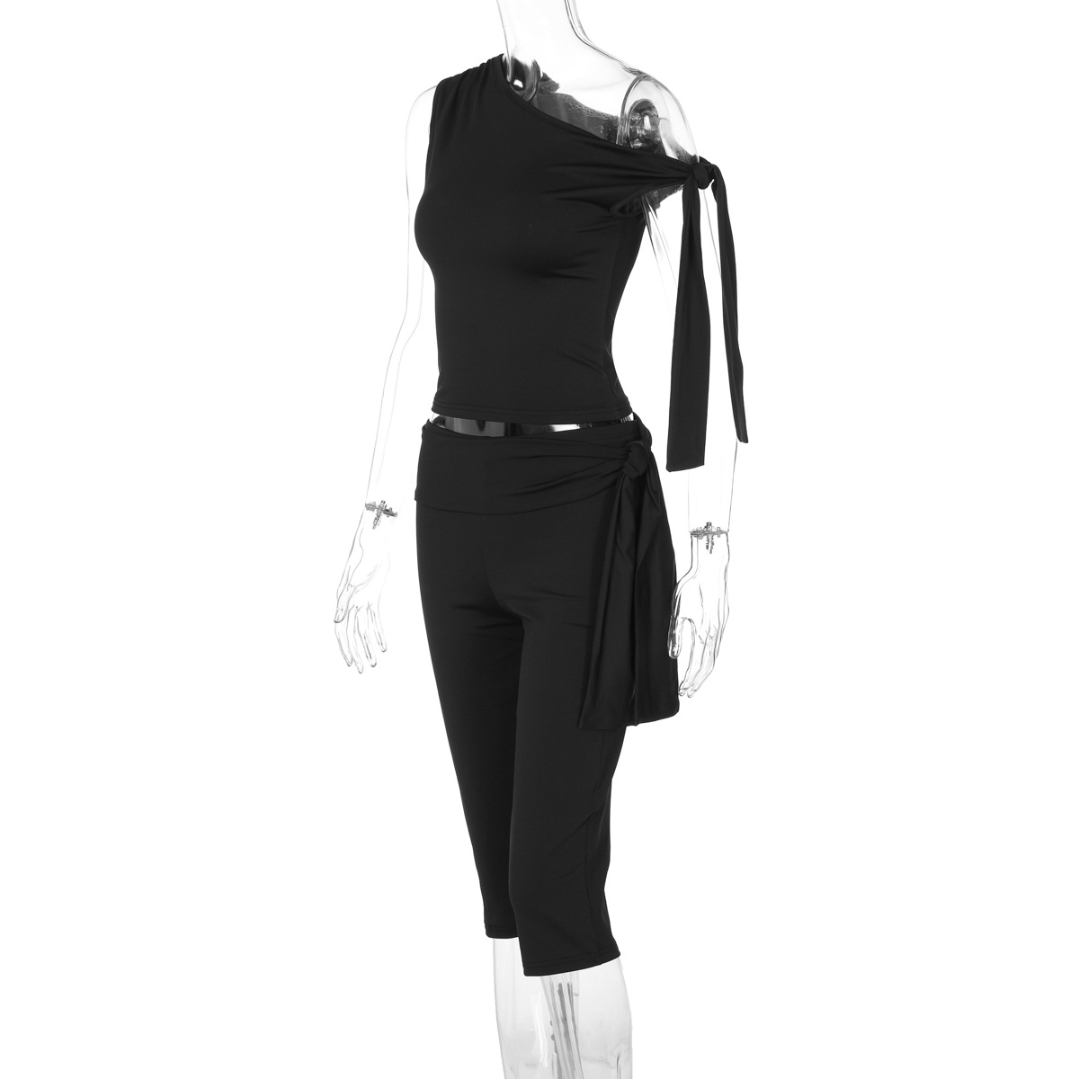 유럽 및 미국 여성복 2025 여름 신상 패션 스트리트 스타일 사선 넥라인 민소매 탑 슬림핏 레이스업 반바지 세트 도매스토어 가기